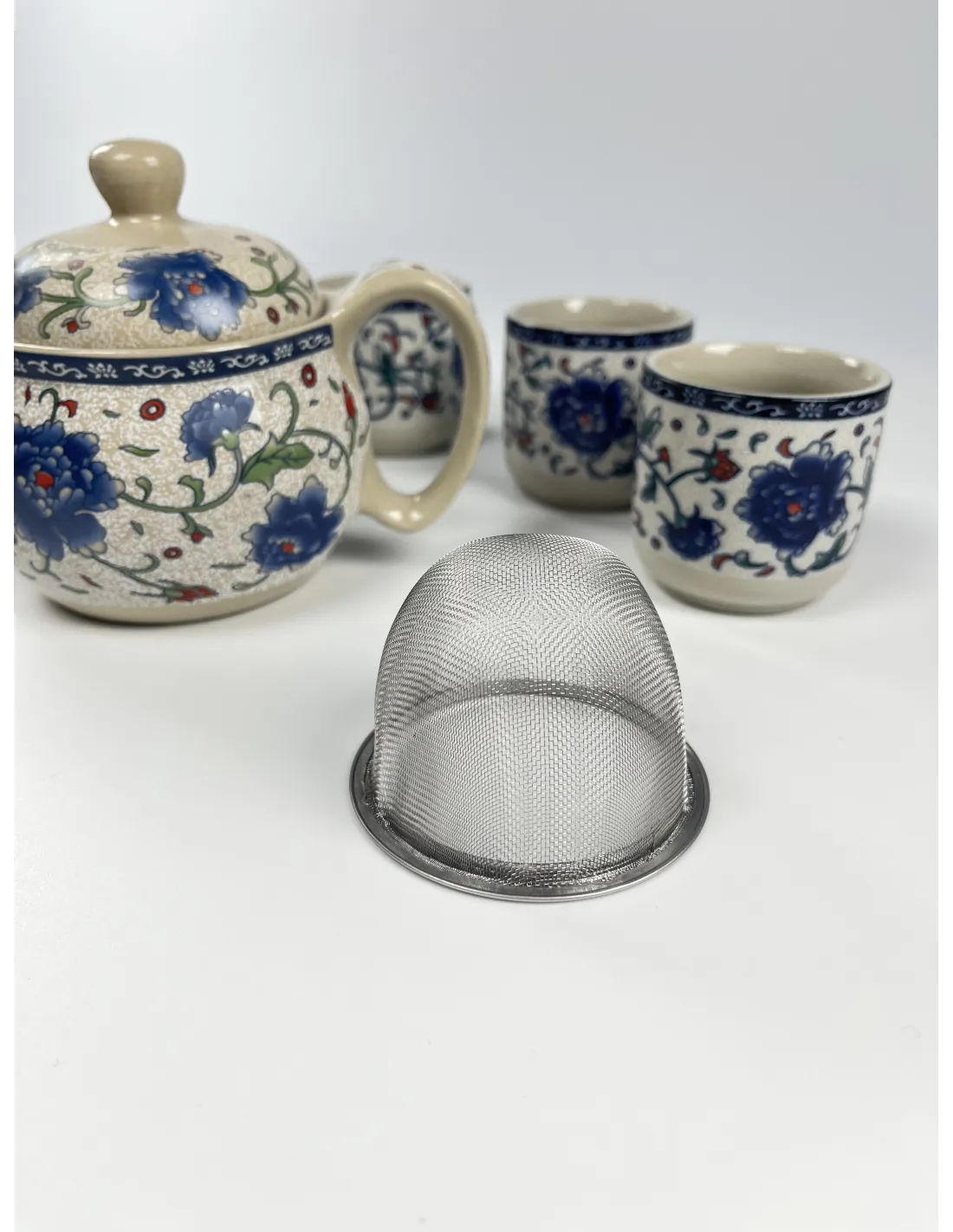 Комплектът включва елегантен чайник с метална цедка, която улеснява запарването на чаените листа, без да оставя нежелани остатъци в чашата. Комплектът включва и 6 чаши в традиционен китайски стил, идеални за споделяне на чай с приятели или семейството.