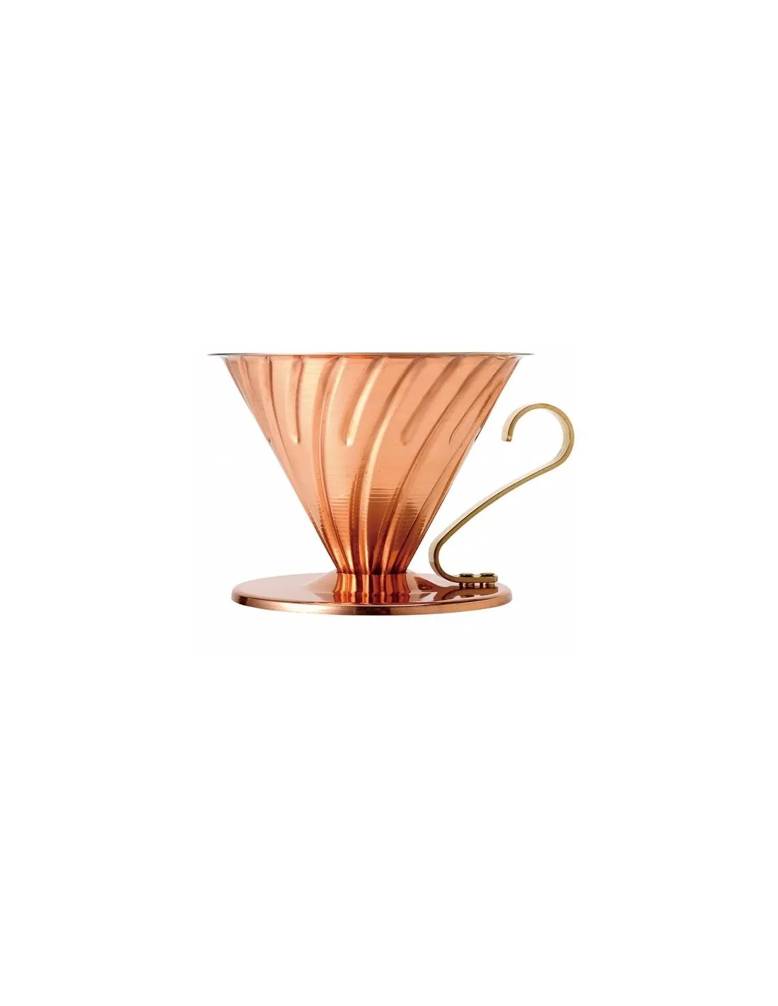 Истинско дизайнерско произведение е медният капкомер V60 на японската марка Hario, чиито капкомери са класика в света на филтърното кафе. Той ще се превърне във ваш голям помощник, който ще направи приготвянето на филтърно кафе лесно, а резултатът ще си заслужава! Медта провежда много добре топлината, така че екстракцията е по-добра и кафето запазва всичките си вкусове и аромати.