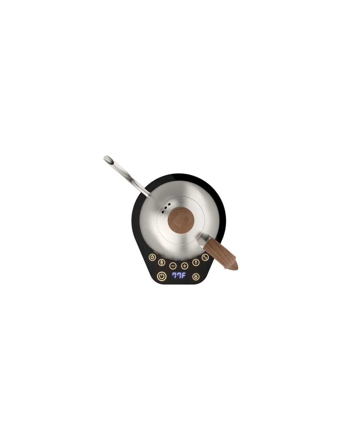 Дисплеят на стъклената основа показва текущата температура на водата, така че служи и като термометър.