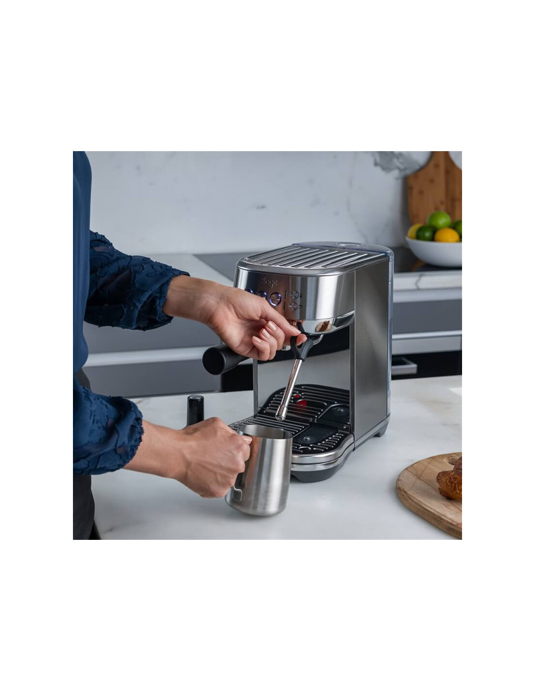 Лостовата еспресо машина SAGE THE BAMBINO™ PLUS предлага професионално качество на еспресото и бързо загряване за 3 секунди за перфектно кафе и млечни напитки.