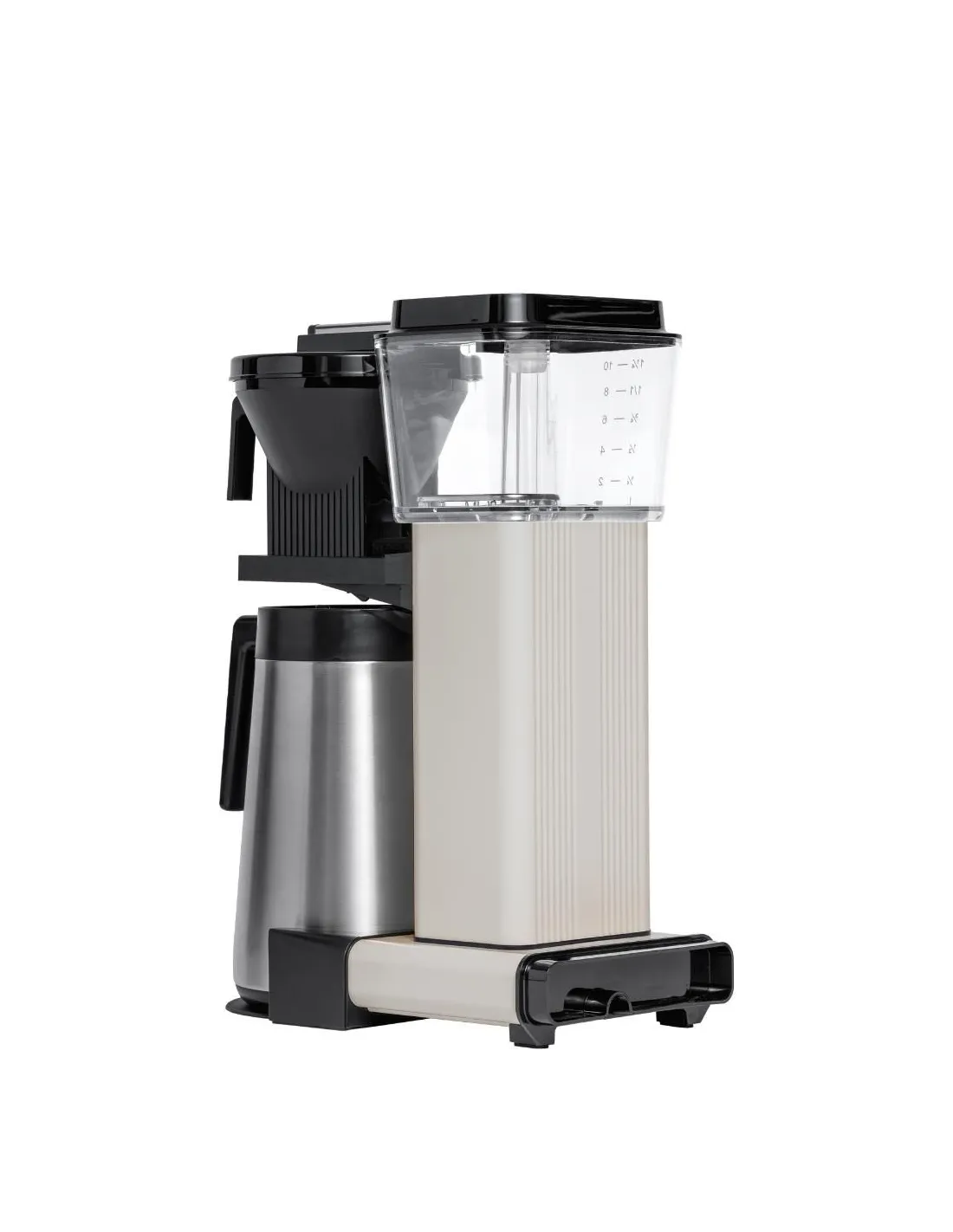 Абсолютно съществена характеристика на тази кафемашина е способността ѝ да поддържа постоянна температура от 92-96 °C по време на целия процес на екстракция. Равномерното наливане на кафето се осигурява от специална глава с 9 отвора. В сравнение с Moccamaster KBG-741 този модел е оборудван с термоконтейнер от неръждаема стомана с обем 1,25 л, който запазва кафето горещо по-дълго време. Дори не е необходимо да се притеснявате за сложността на цялото устройство. Кафемашината има само един бутон за изключване и включване и разполага с функции за автоматично изключване и спиране на капките.