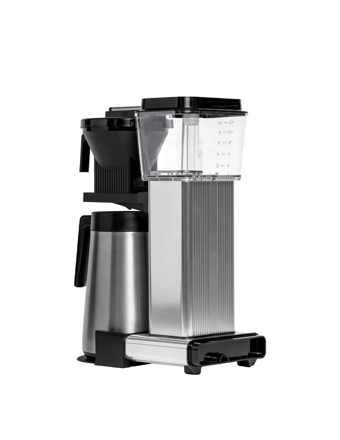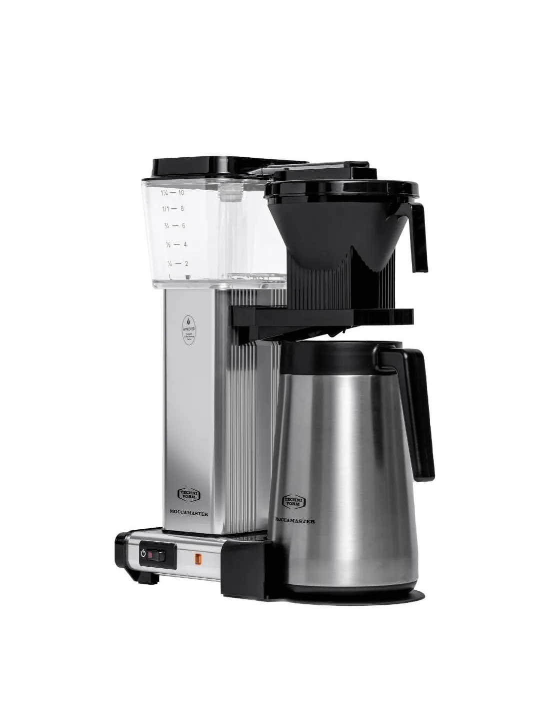 Абсолютно съществена характеристика на тази кафемашина е способността ѝ да поддържа постоянна температура от 92-96 °C по време на целия процес на екстракция. Равномерното наливане на кафето се осигурява от специална глава с 9 отвора. В сравнение с Moccamaster KBG-741 този модел е оборудван с термоконтейнер от неръждаема стомана с обем 1,25 л, който запазва кафето горещо по-дълго време. Дори не е необходимо да се притеснявате за сложността на цялото устройство. Кафемашината има само един бутон за изключване и включване и разполага с функции за автоматично изключване и спиране на капките.