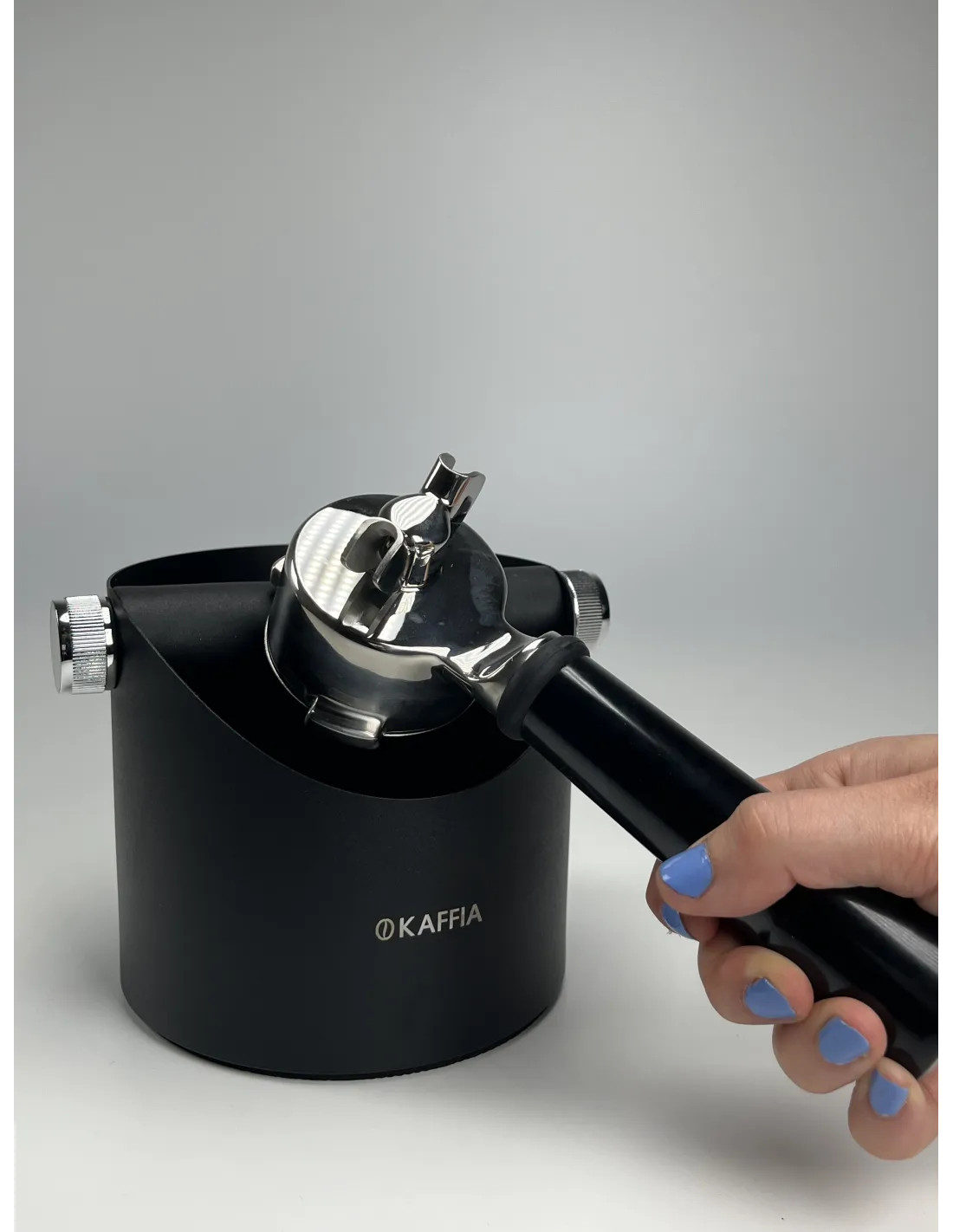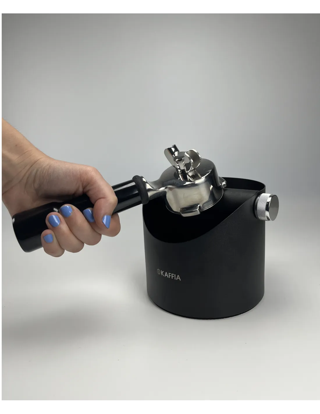 Практична кутийка за чукане от италианската марка Kaffia , която се използва за чукане на остатъците от кафе от лоста на кафемашината.