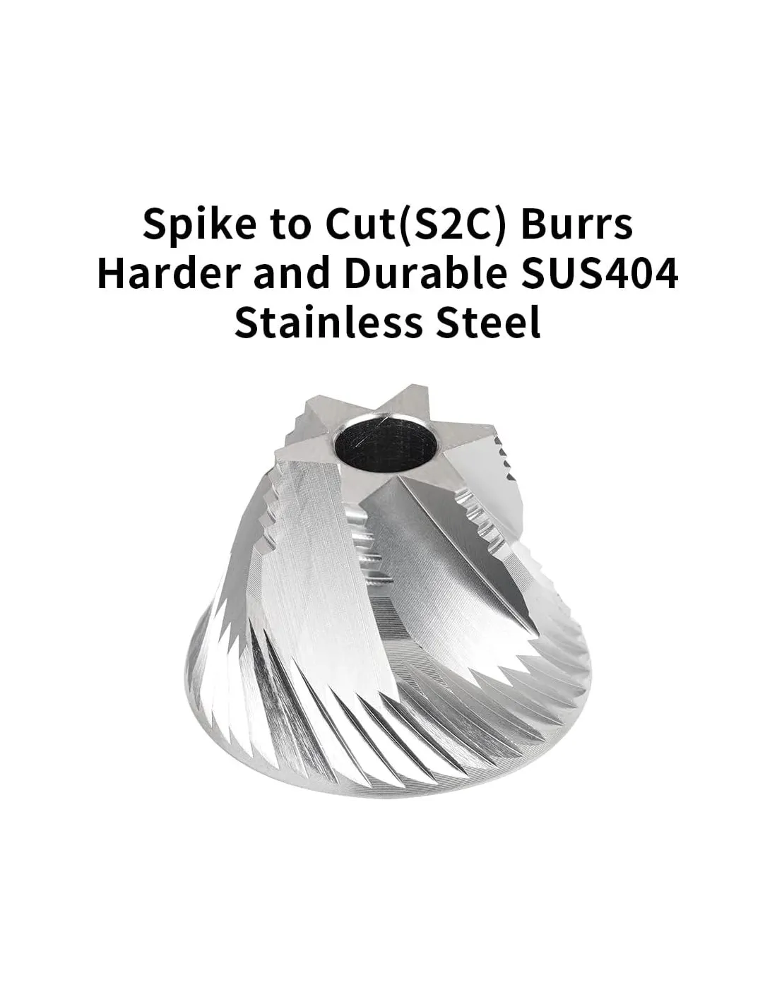 Мелачката Timemore Chestnut C3S PRO предлага нова технология на остриетата "S2C" (spike to cut), при която вътрешното острие има нова форма – вертикални линии преминаващи през горната част на острието. Тази технология се използва и във водещия модел Chestnut X (въпреки че той има по-голям обхват на настройки, по-големи остриета и различна геометрия) и обещава още по-консистентно смилане и съвместимост с еспресо! :) Моделът C2 също мели достатъчно фино за еспресо, но това отнема повече време, така че е по-препоръчителен за алтернативни методи на приготвяне.