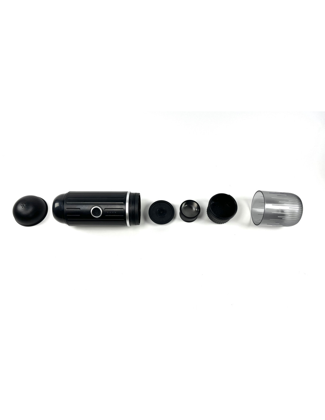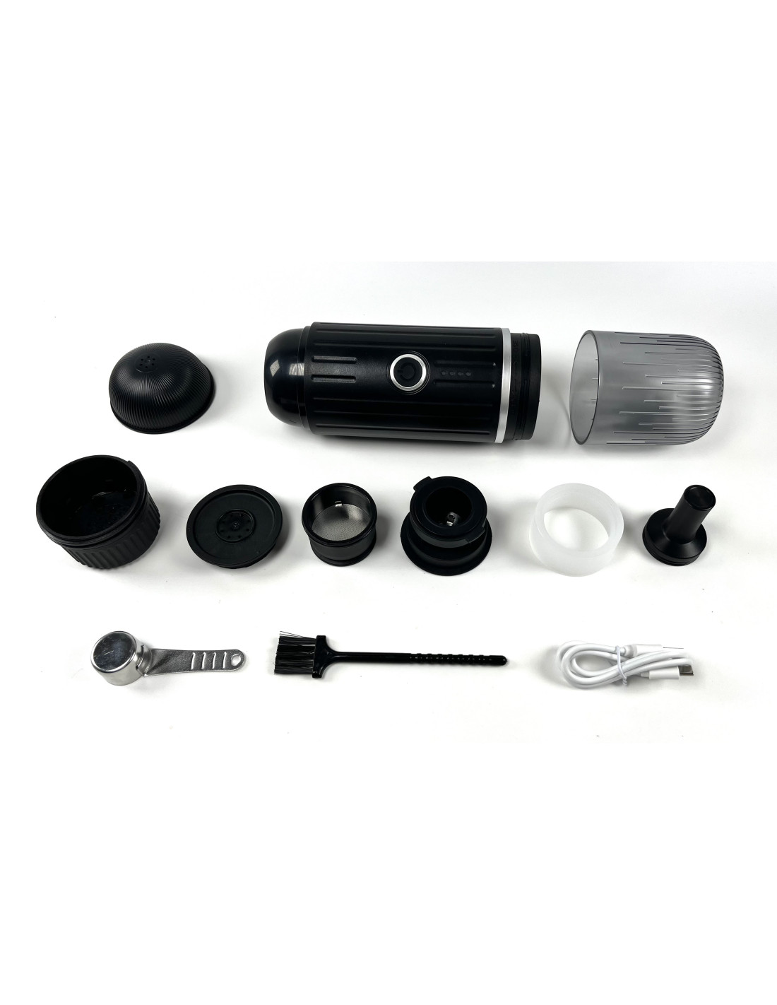 Пътна кафемашина за капсули и мляно кафе с батерия с капацитет 7500 mAh, която загрява вода дори без електрически контакт. Еспресо по всяко време и навсякъде.
