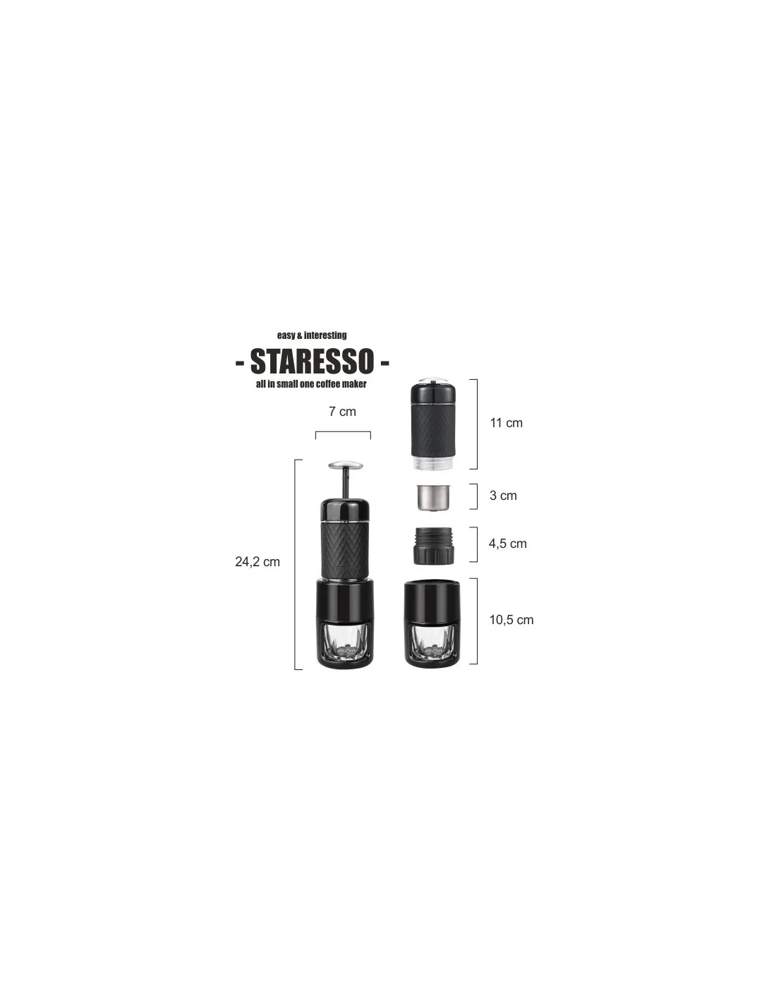 За да приготвите кафе, ще ви е необходима гореща/студена вода, мляно кафе или капсула и сръчните ви ръце. След като изсипете кафето или поставите капсулата, наливате водата и затваряте всичко плътно. Приготвянето е ръчно. След това ръчната помпа се използва за създаване на необходимото налягане, за да се постигне златиста екстракция на кафето с богата пяна. От вас зависи дали ще изберете интензивно изстискване за перфектно еспресо или ще изберете по-бавен поток за богато американо.