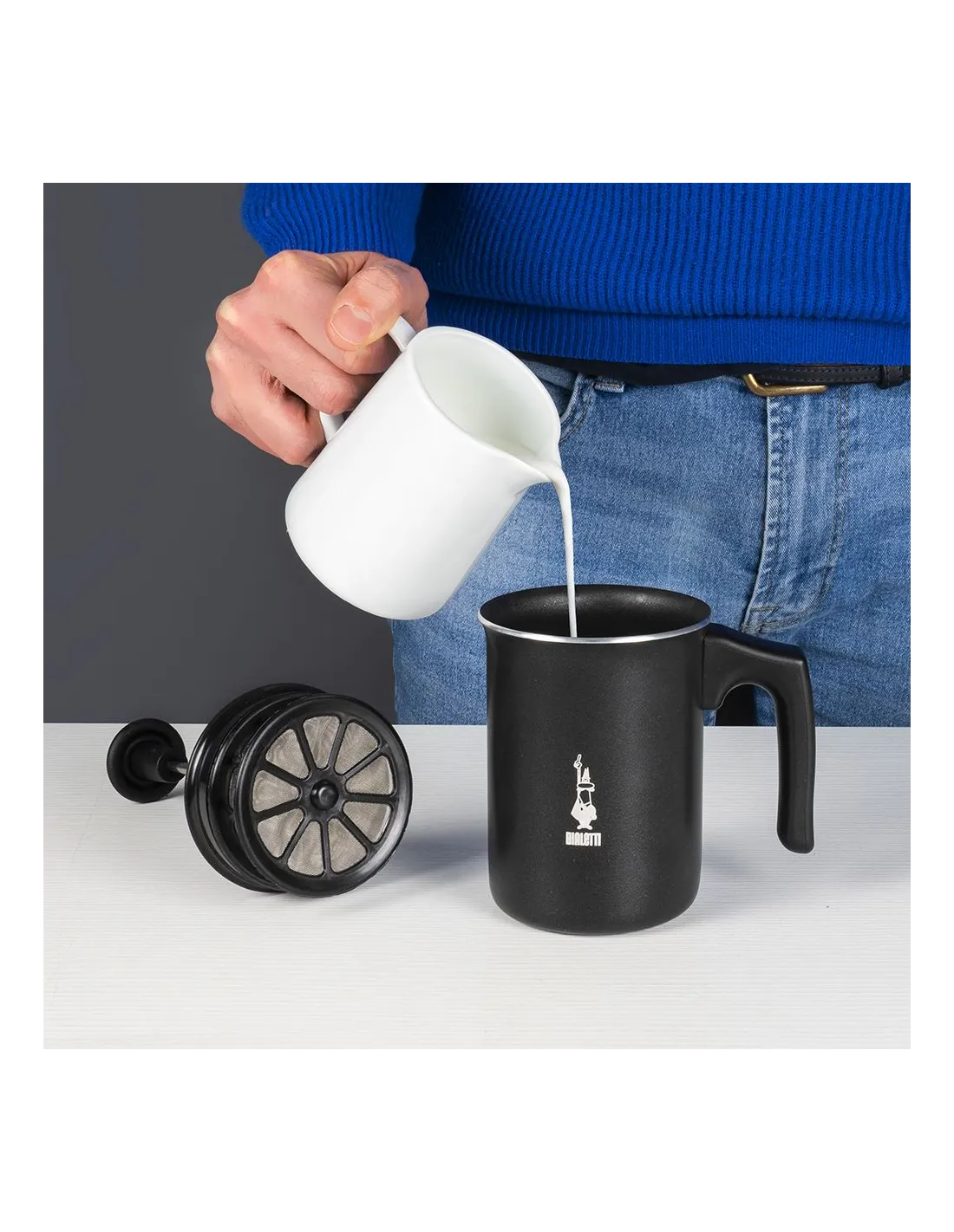 Разпенващото устройство за мляко Bialetti Tuttocrema ще се хареса на всички любители на млякото в кафето или други напитки. Въпреки това вече не е необходимо да наливате студеното мляко от бутилката. Благодарение на стилната бъркалка за минути можете да сътворите красива гъста и гладка млечна пяна, готова да се излее в кафето ви за нула време.
