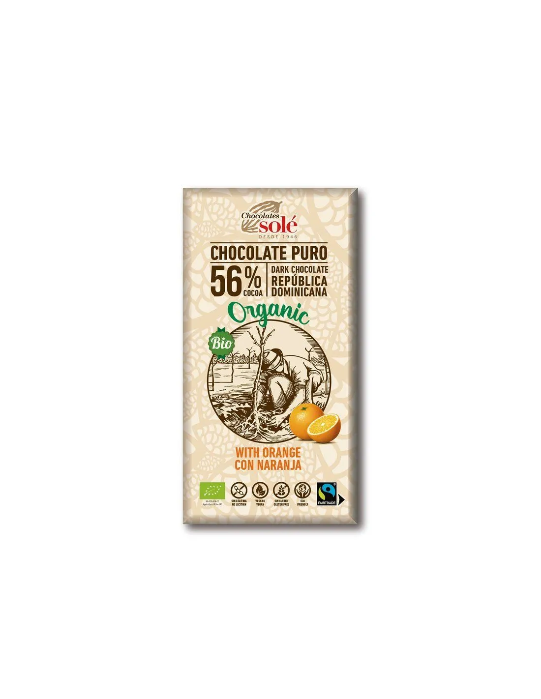 Chocolates Solé - 56% bio čokoláda s pomerančem. Ochutnejte nejlepší karibské kakao s nádechem středomořského pomeranče.