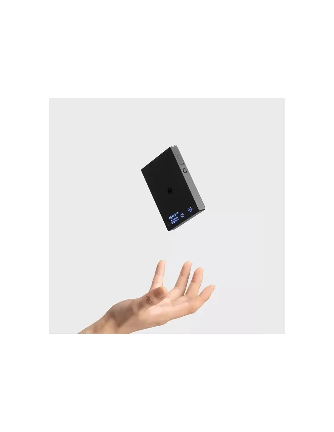 Minimalistický, elegantní a moderní vzhled váhy Timemore Mini Espresso, s vysoce kvalitním materiálem a pozorností na každý detail. Tělo je vyrobeno z hladkého, matného černého plastu - data jsou neviditelná, dokud se nedotknete panelu a nerozsvítí se. Váha se ovládá dvěma tlačítky na dotykovém panelu. Horní část váhy je vodotěsná. Stejně tak port USB-C, pro dobíjení, díky silikonovému vodotěsnému víčku.