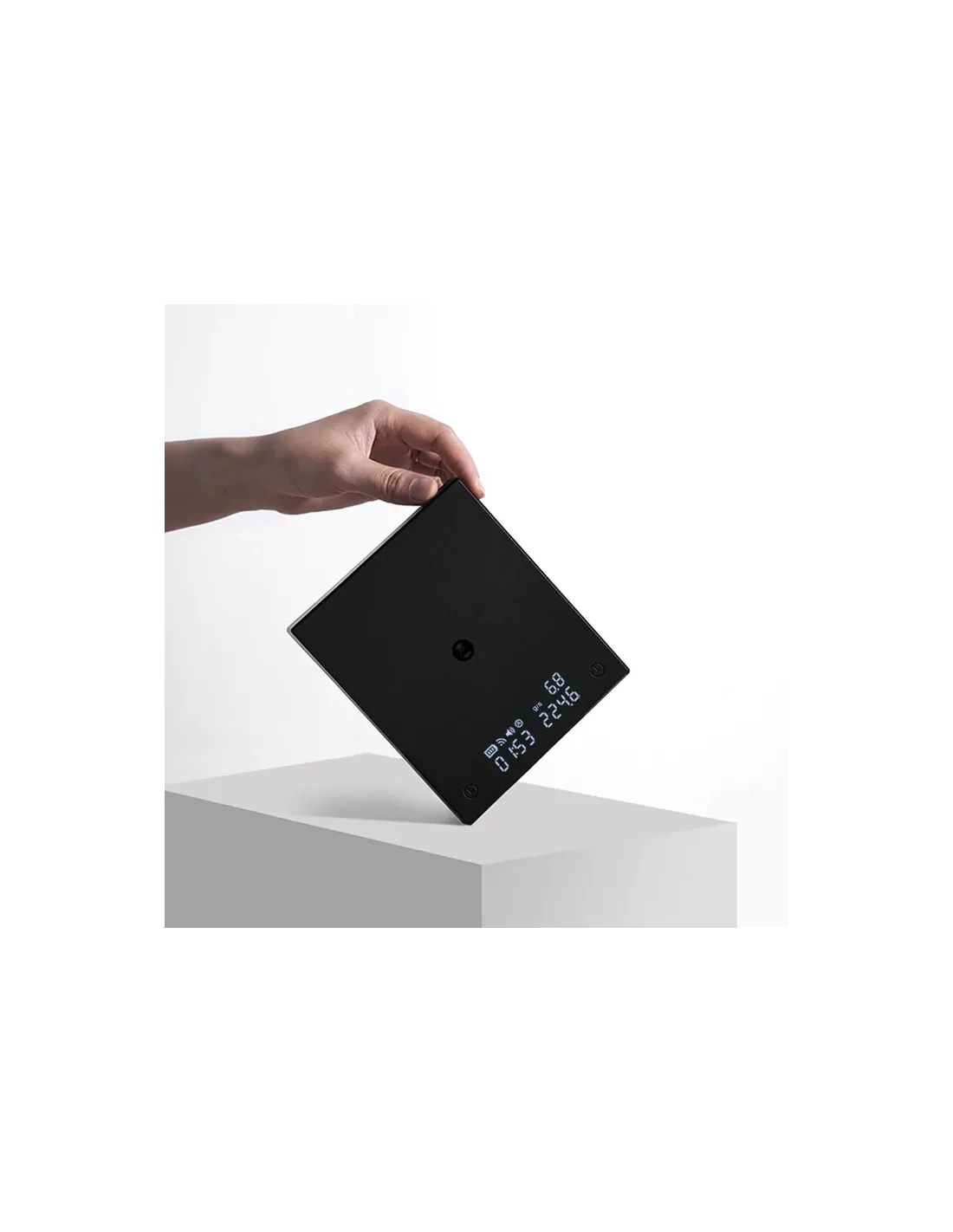Nový model stylové digitální váhy Timemore Mirror Basic PRO ve černé barvě s minimalistickými prvky a elegantním designem je ideálním pomocníkem pro domácí i profesionální přípravu espressa nebo pro metodou pour-over jako je Chemex, dripper nebo AeroPress.
