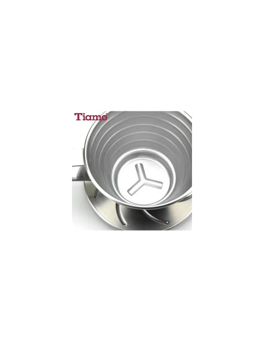 Plochý filtr ve stylu Kalita Wave od společnosti Tiamo z robustní nerezové oceli. Ploché dno filtru je ve srovnání s V60 o něco šetrnější při používání a umožňuje rovnoměrnější extrakci. Papírové filtry, které lze s tímto kávovarem použít, jsou vlnové filtry s plochým dnem Kalita 185 nebo 100% nebělené ploché filtry Tiamo.