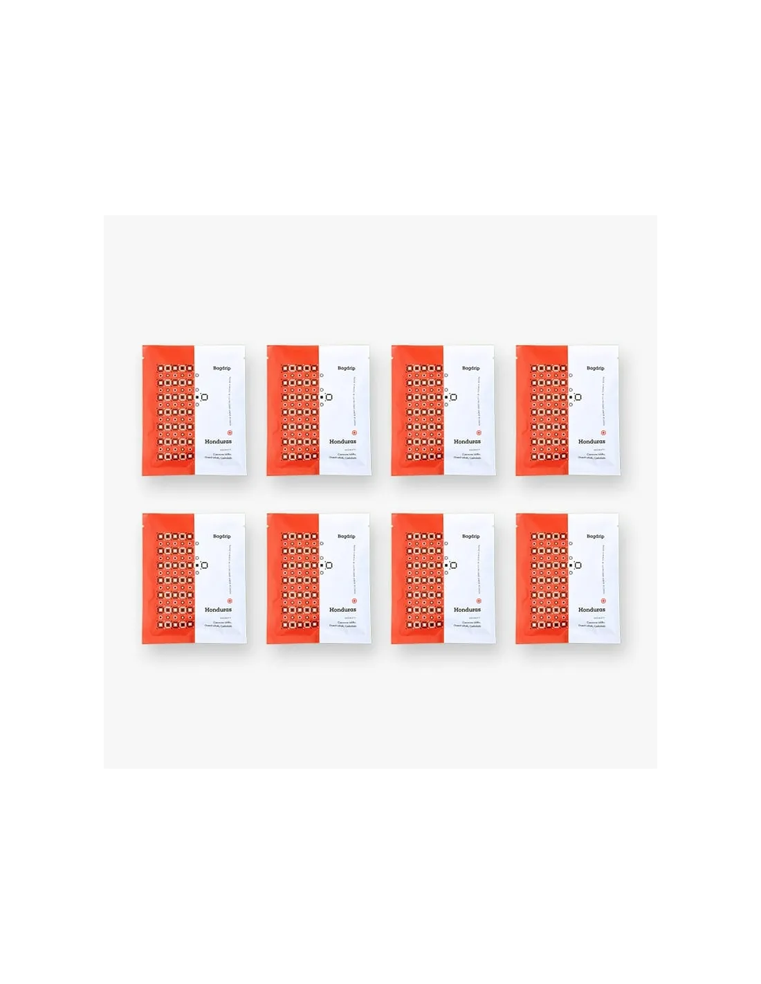 Cestovní balíček kávy Honduras s osmi sáčky. Oblíbená jednoduchá metoda přípravy kávy pomoci přiloženého filtru. Stačí zalít horkou vodou.