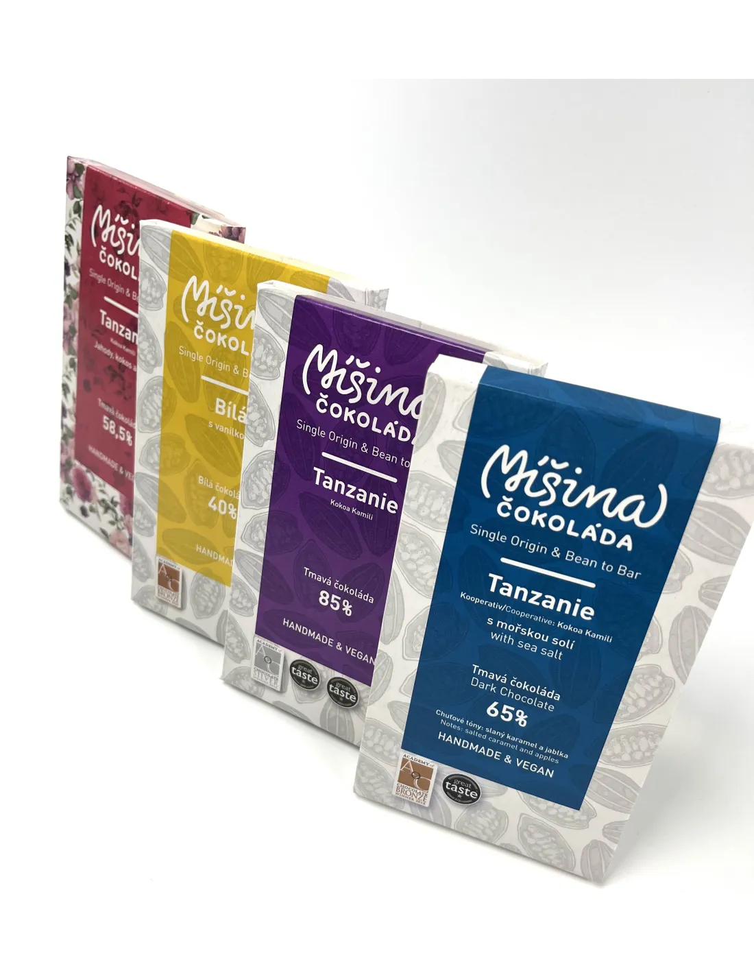 Míšiny čokolády jsou vyrobené metodou bean to bar bez lepku, lecitinů, konzervantů, barviv a rostlinných olejů.