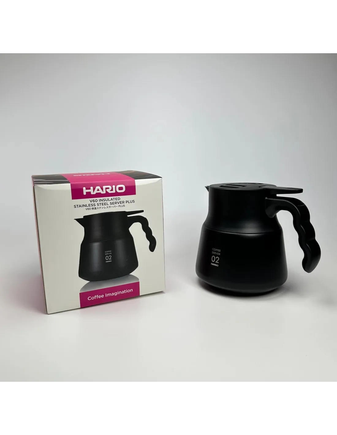 Dvoustěnná vakuově těsněná termo konvice Hario V60 Thermo server z nerezu pro profesionální servírování čerstvé a teplé kávy, či jiných nápojů. Objem: 600ml.