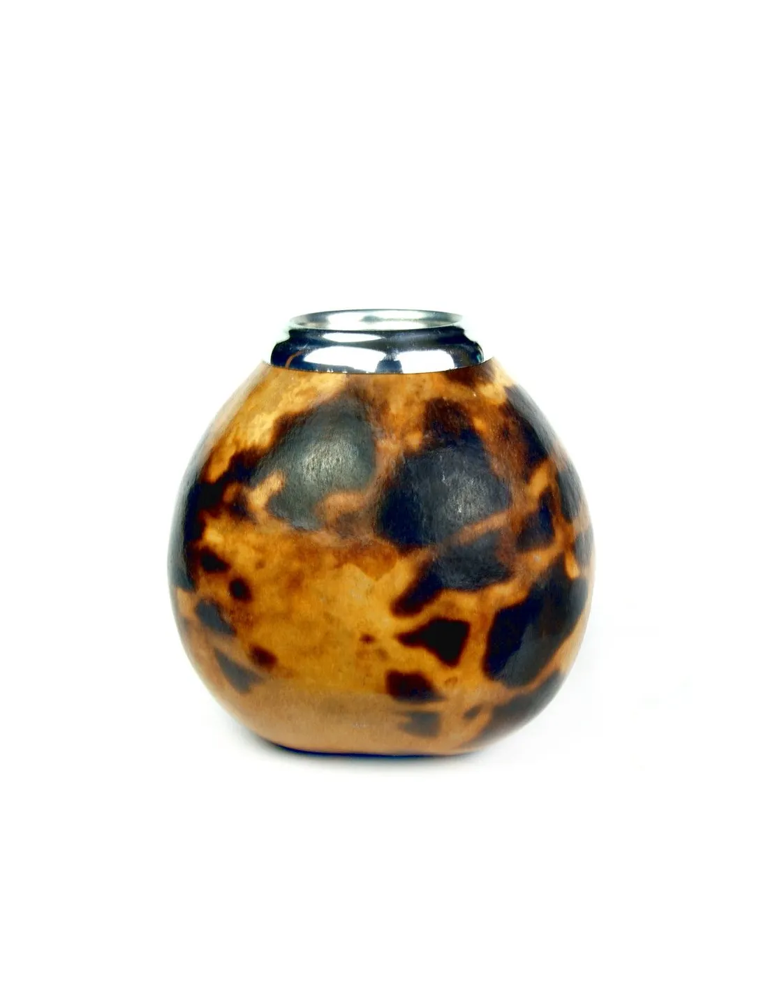 Klasický tvar, originální vzor připomínající leopardi skvrny a kovový stříbrný lem dělají z tykve univerzální a pěknou nádobu na pití maté.