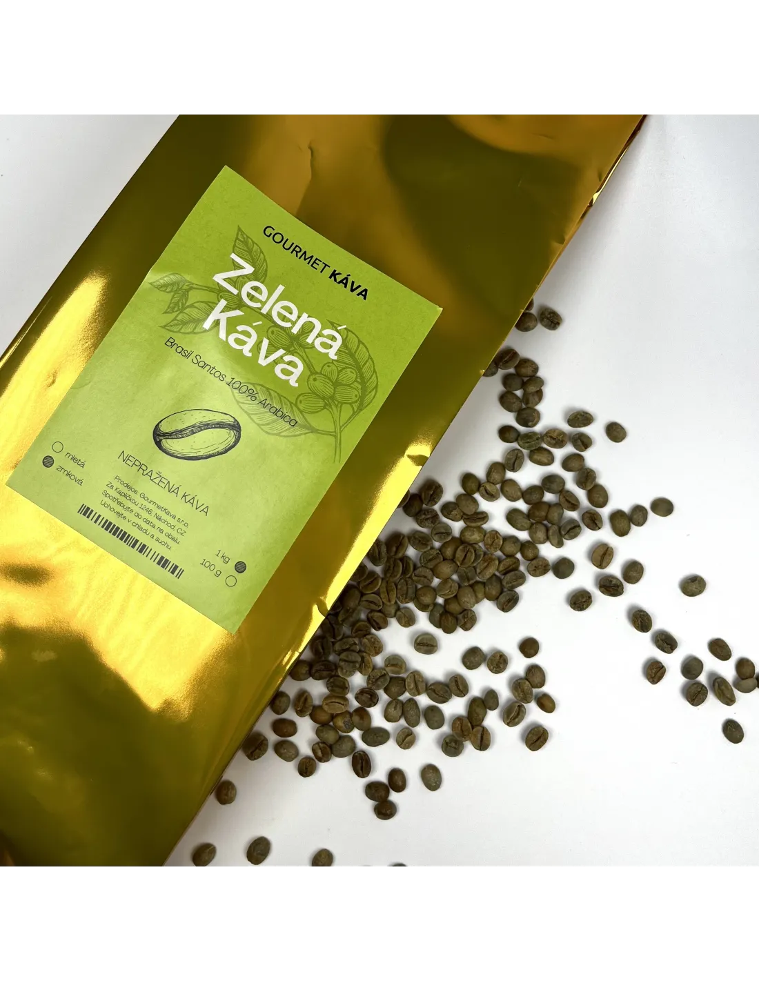 Zelená nepražená zrnková káva Brazílie Santos, 100% arabica! Vhodná na podporu hubnutí i detoxikaci organismu. Narozdíl od tradiční pražené kávy obsahuje zelená káva i více kofeinu.