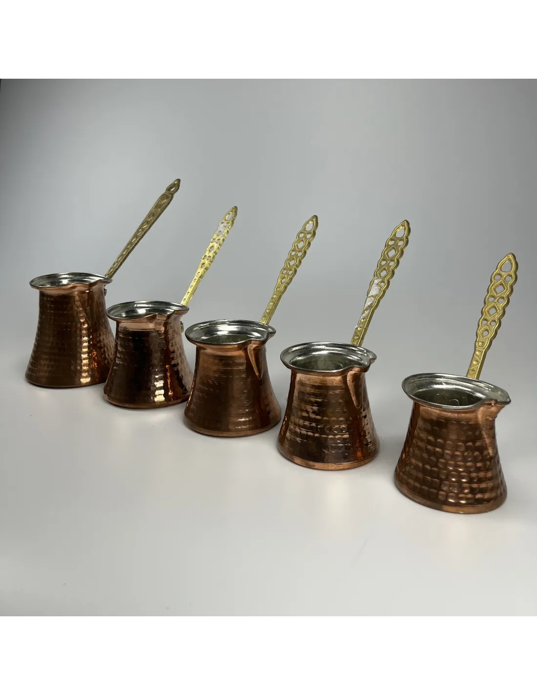 Ahandmade copper jazzva straight from the Turkish countryside. The jeezva is hammered using the traditional artisanal method.