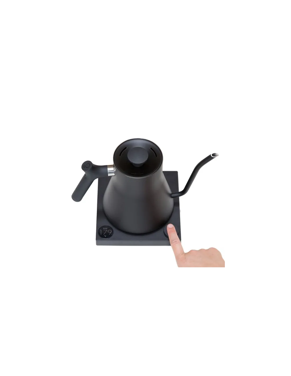 The new stylish Fellow Stagg EKG kettle with adjustable temperature, stopwatch and narrow spout for precise pouring. 0.9 l capacity. Colour: black.