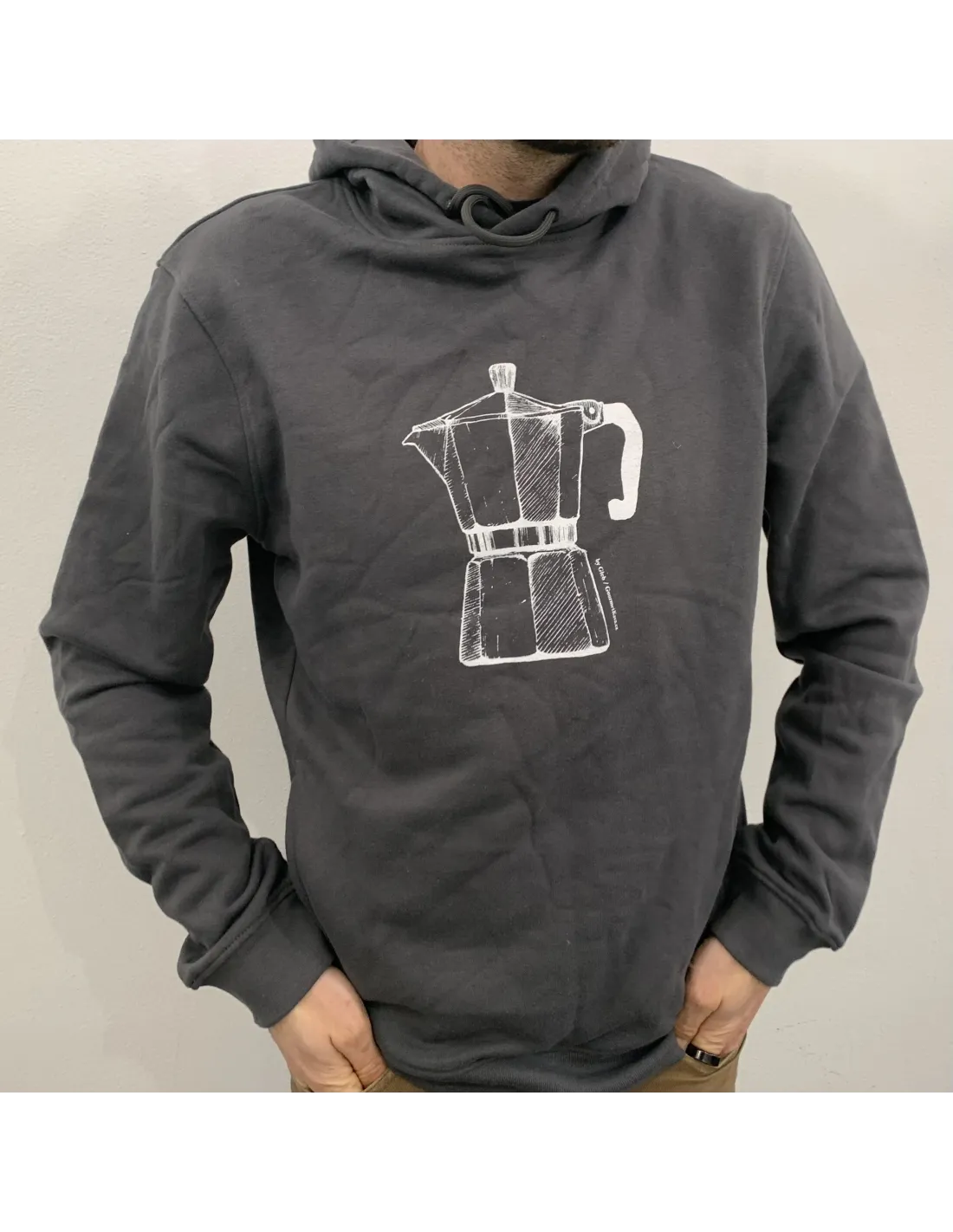 Stylish cotton sweatshirt with mocha pot motif.