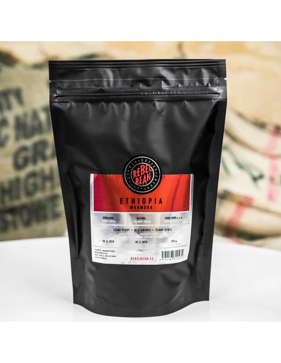 Exceptional selection and freshly roasted Ethiopia Mormora coffee from the Brno roastery Rebelbean. Transparent origin. Current harvest. Always freshly roasted.
