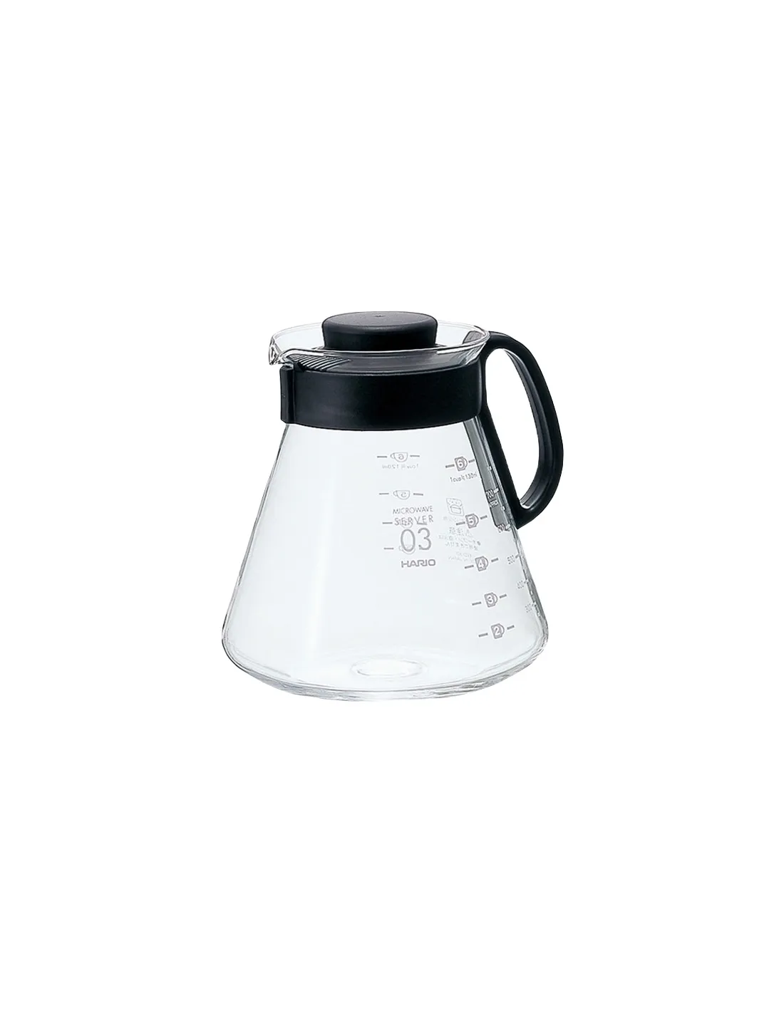 The Hario V60 Range Server 800 ml heat-resistant glass coffee pot for professional serving of fresh coffee. Also suitable for microwave.
