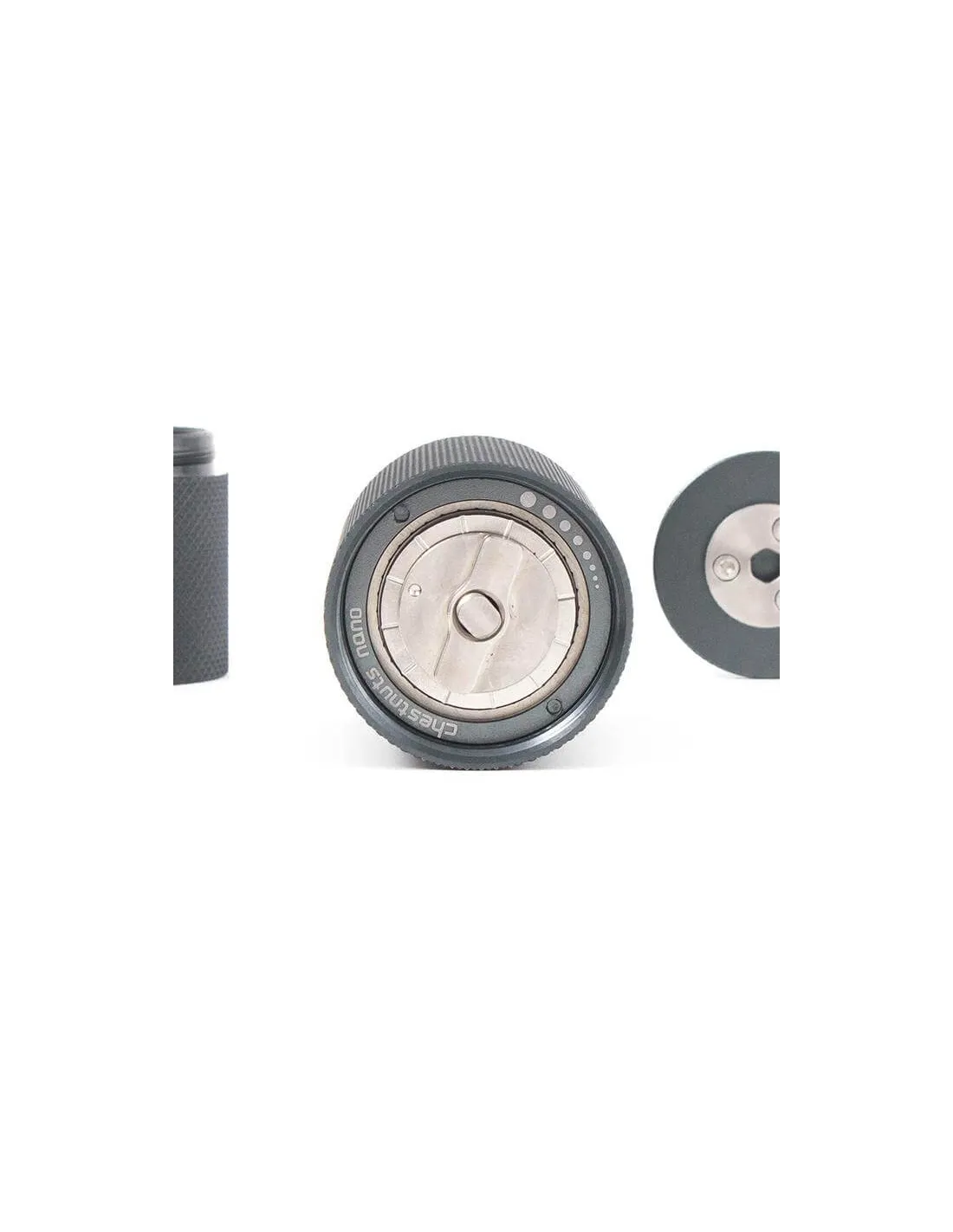 The Timemore Nano is a compact small grinder with excellent workmanship made from a single piece of aluminium. Ideal for travelling. The grinder is equipped with precision hardened steel conical stones and 2 bearings that allow for a highly accurate and constant grind. The coarseness is easily adjusted by a rotary nut on the bottom of the grinder.