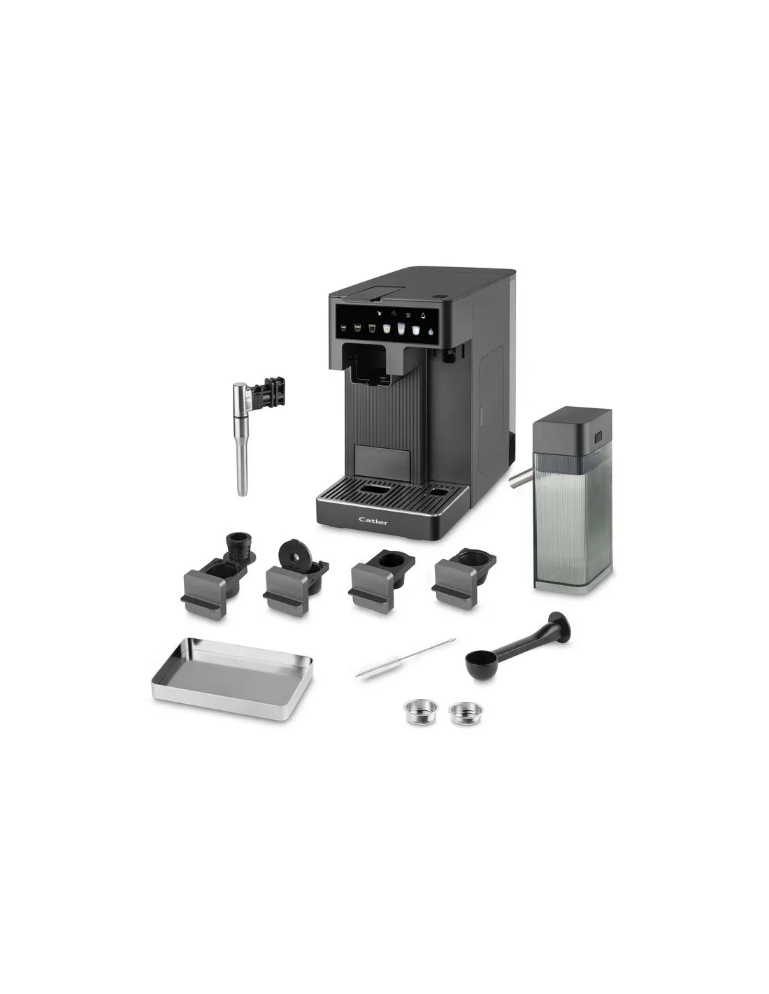 Catler ES 750 G Renzo espresso aparat u sivoj boji omogućuje pripremu kave iz kapsula i mljevene kave . Jednostavan rad i moderan dizajn jamče udobnu upotrebu.
