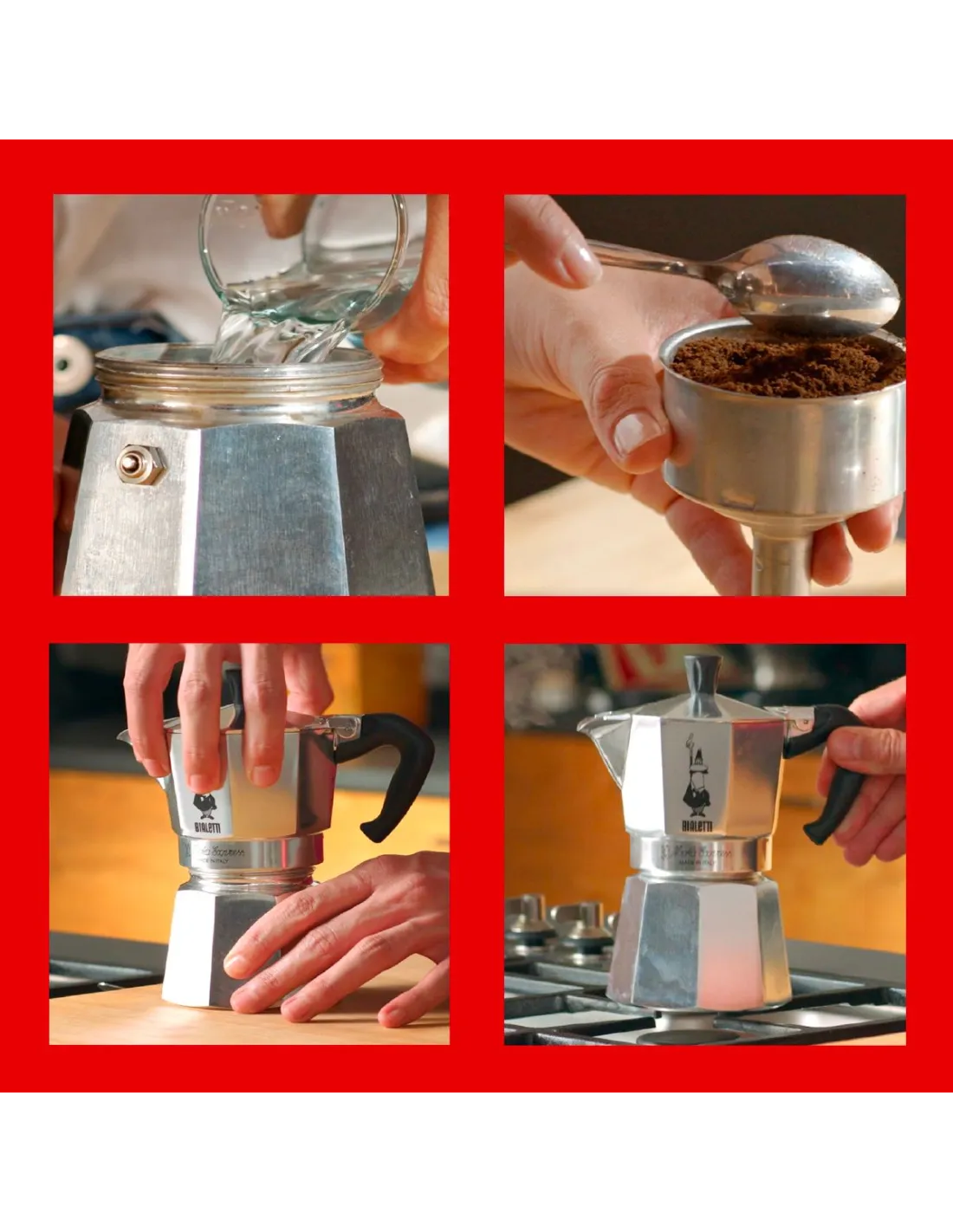 Bialetti Moka Express je vyrobena z potravinářského hliníku a pohodlná rukojeť je z plastu. Nádobí z hliníku bývá neoblíbené, v tomto případě to však není na místě. Vnitřek kávovaru se po čase používání potáhne patinou, a nasaje chuť kávy. Právě kvůli této chuti a jednoduchosti celého ústrojí jsou bialetky celosvětově tak oblíbené.