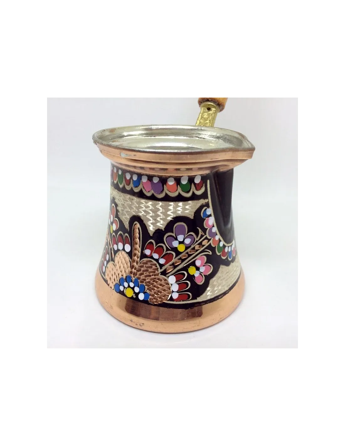 Ručno izrađena i ukrašena bakrena džezva izravno iz turskog sela. Džezva se kuje tradicionalnom zanatskom metodom.
