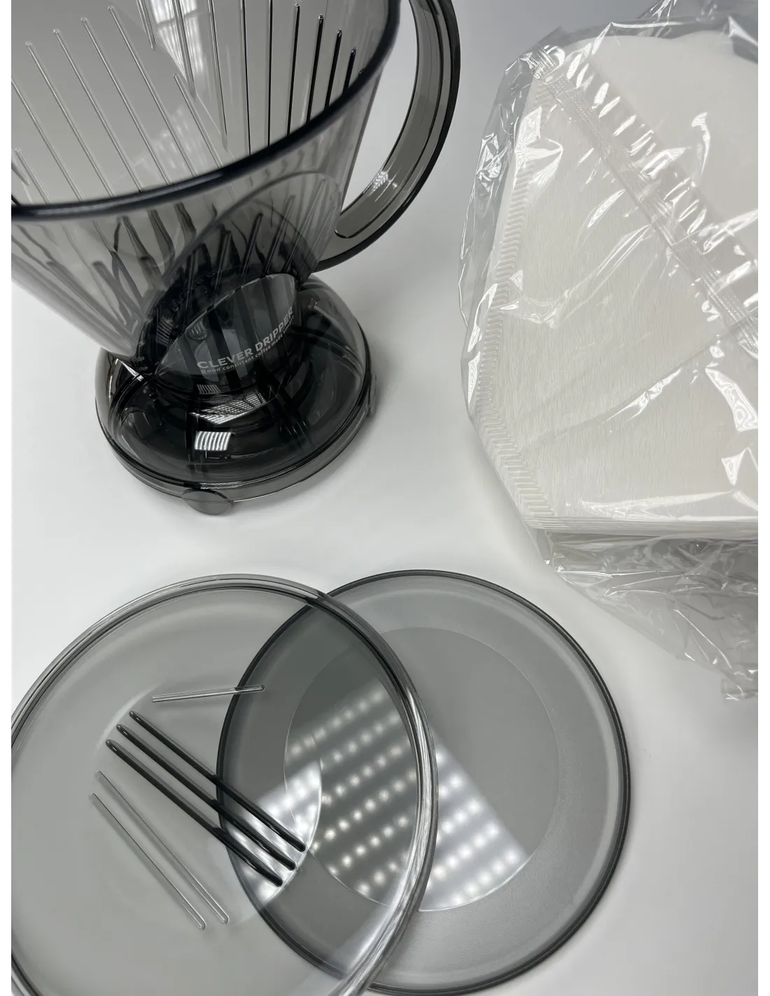 Pametni dripper Clever ujedinjuje prednosti french pressa i istovremeno prednosti klasičnog V60 drippera. Zbog patentiranog ventila na dnu Clever Drippera možete, za razliku od klasičnog drippera, kavu namakati po vremenu koje odredite, baš kao u slučaju french pressa. Kada zatim postavite Clever Dripper na šalicu, ventil će se automatski otvoriti i kava će proći kroz filter. Na taj način možete lijepo kontrolirati okus i puninu kave. Zbog papirnog filtra, kava je potpuno čista. Sada je u pakiranju uključeno 100 filtara.