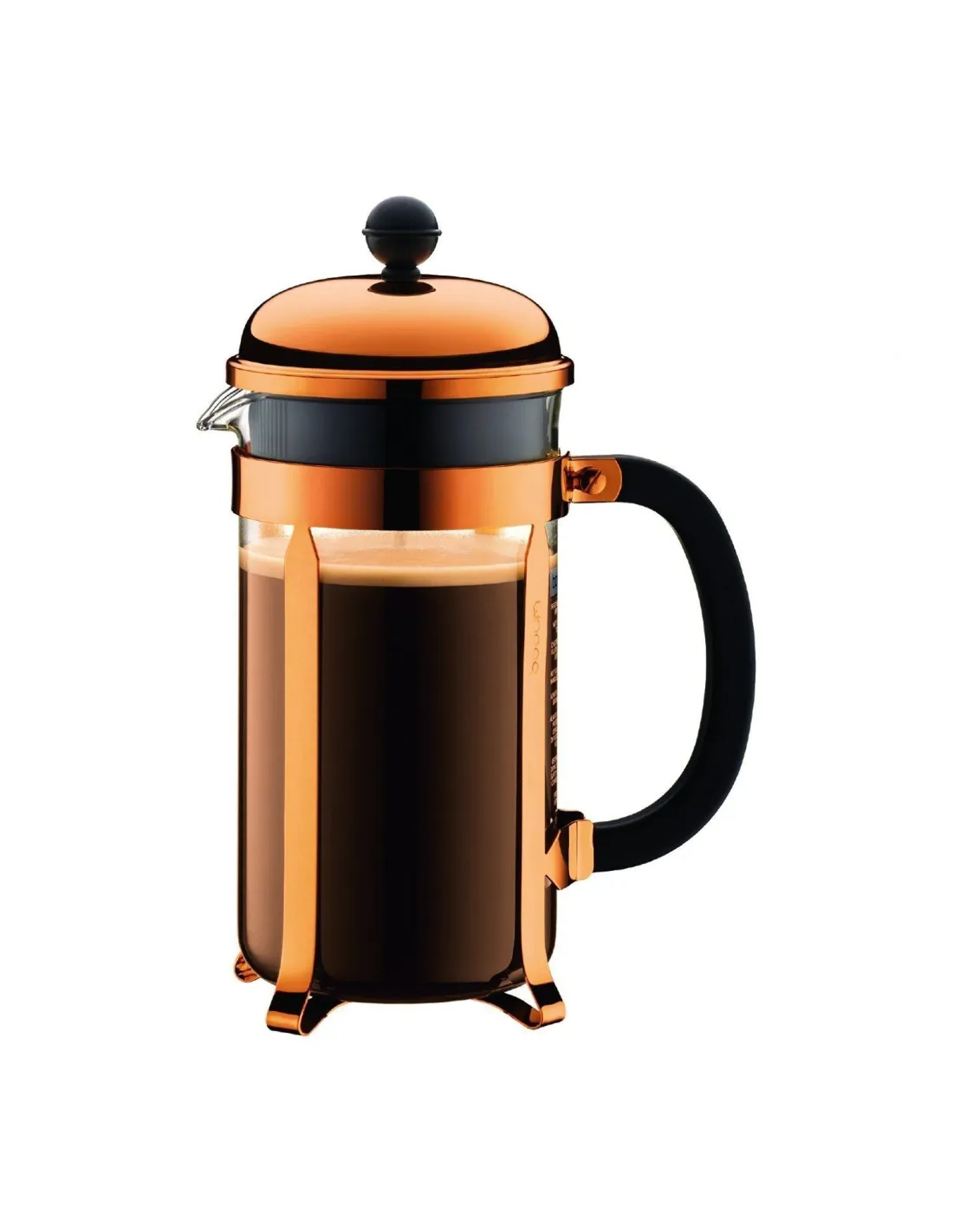 Luksuzna i elegantna francuska preša od nehrđajućeg čelika Bodum Chambord zapremine 1000 ml za pripremu ukusne svježe kave . Boja : bakar.