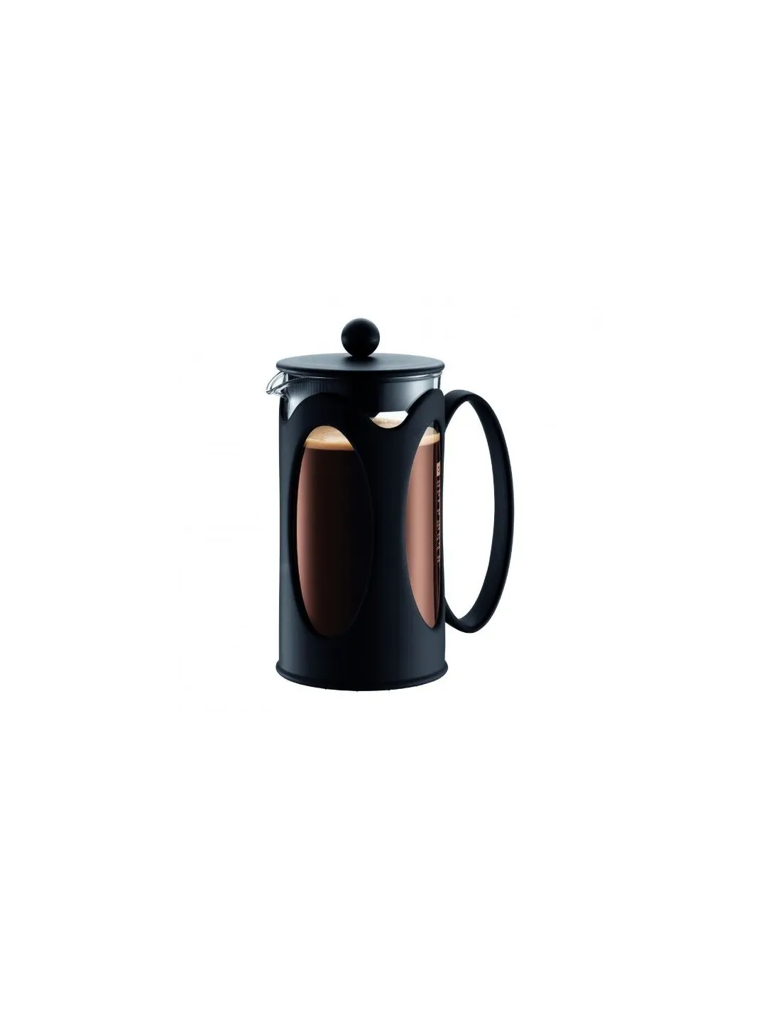 Luksuzna baršunasta crna plastična francuska preša Bodum Kenya zapremine 1000 ml za pripremu ukusne svježe kave .