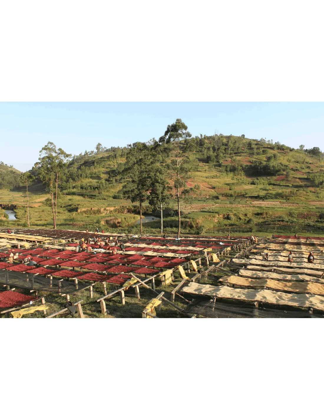 Tijekom sezone berbe kava se bere selektivno ručno . Trešnje se plutaju u malim kantama kako bi se provjerila njihova kvaliteta. Nakon toga kvalitetne trešnje se ručno sortiraju i odstranjuju oštećene, nezrele i prezrele trešnje. Trešnje se zatim suše 3 do 4 tjedna na stolovima za sušenje u jednom sloju. Berači tijekom sušenja obilaze trešnje i traže neispravne komade. Nakon sušenja pergamena se pakira u vreće i odvozi u skladište. Stručnjaci u laboratoriju Greenco procjenjuju svaku seriju i osiguravaju sljedivost tijekom cijelog procesa.