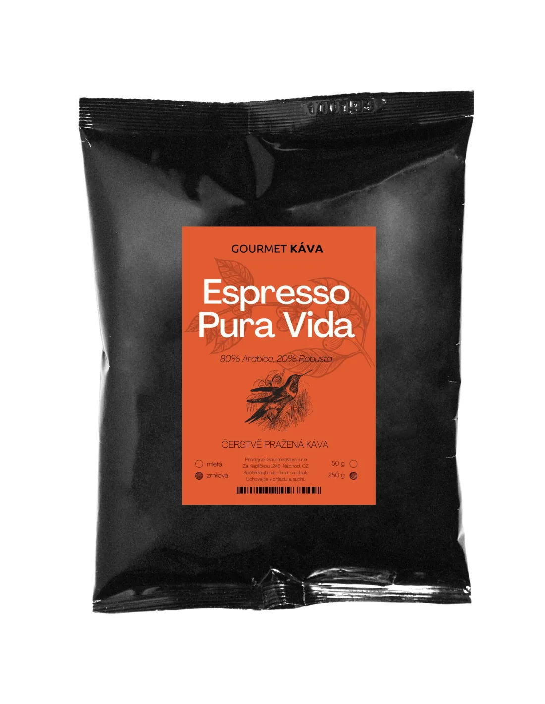 Podrijetlo kave: Espresso smjer Pura Vida sastoji se od 80% 5 vrsta srednjoameričke kave , koje su dopunjene kvalitetnom indijskom robustom . Robusta sadrži više kofeina i daje mješavini snagu koju želite od kvalitetnog espressa.