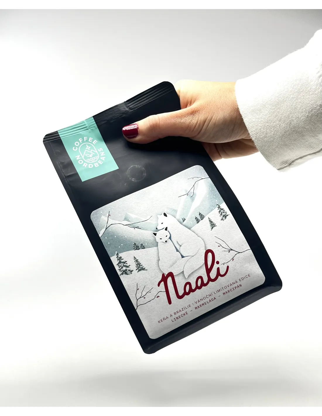 Naali, arktička lisica, simbolizira zimsko doba , kada priroda usporava. Naša božićna kava spaja profile okusa iz Kenije i Brazila , evocirajući uspomene na trenutke s voljenim osobama pune slatkih nota. Okus: slatke note Linza, marmelade i marcipana