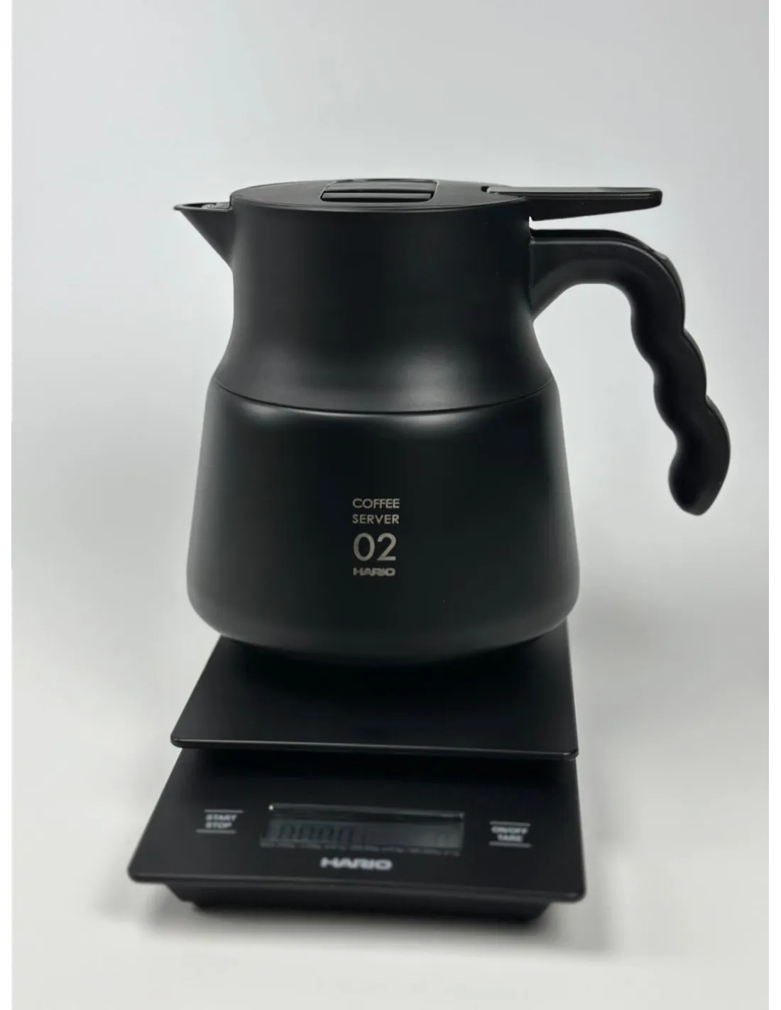 Dvostruko vakumirano termo kuhalo za vodu Hario V60 Thermo server od nehrđajućeg čelika za profesionalno posluživanje svježe i tople kave ili drugih napitaka. Zapremina: 600ml.