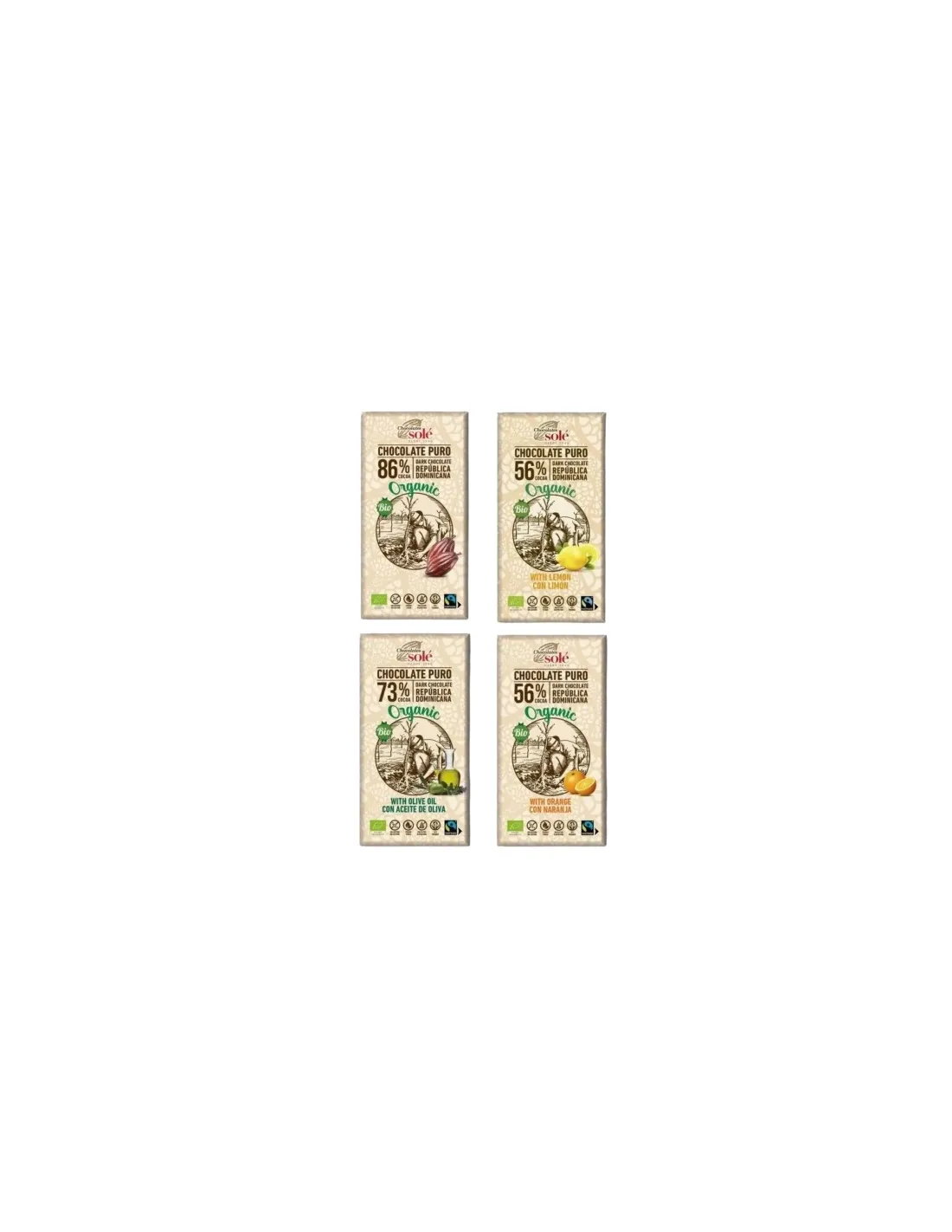 A csokoládék a Chocolates Solé spanyol családi vállalkozásból származnak, amely 1946 óta van jelen a piacon, és megalakulása óta a legjobb csokoládék előállítására összpontosít. Ezenkívül 1999 óta úttörő szerepet játszik a biocsokoládé előállításában. A biokakaó az összetevők gondos kiválasztásán alapul. Az általuk használt nyersanyagok kizárólag ellenőrzött ökológiai gazdálkodásból származnak, műtrágyák és növényvédő szerek, valamint egyéb anyagok, például a növényi és állati sejtek membránjában jelen lévő lecitin nélkül. 100%-ban a Dominikai Köztársaságból származik a fő összetevők, például a kakaó, míg a finomítatlan cukornád Brazíliából.
