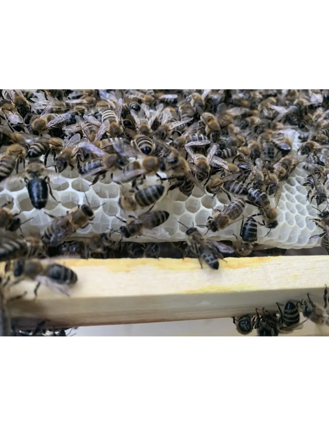 A méz kizárólag új, tiszta fésűből származik, amely megőrzi fehér színét, vegyszermaradványok és régi rétegek nélkül.