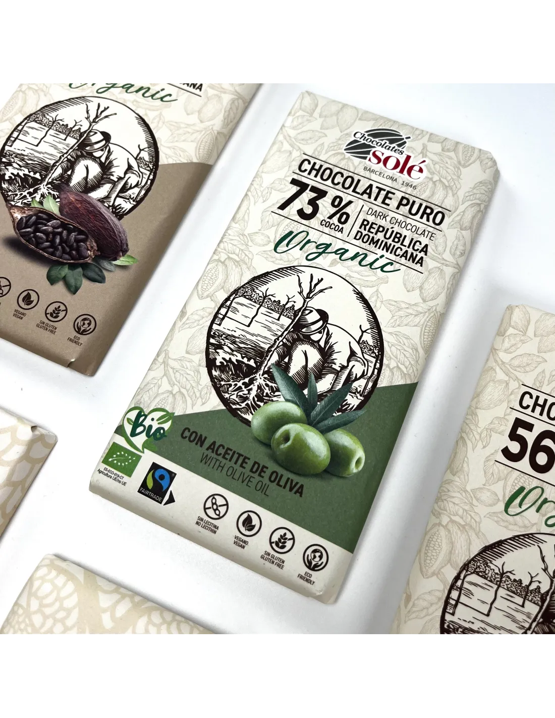 Solé- 73% bio csokoládé olívaolajjal. A Földközi-tenger friss illata. Ez a csokoládé extra szűz olívaolajjal.