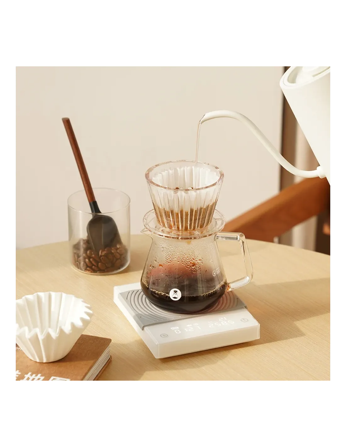 Továbbfejlesztett funkció a Flow rate vagy a víz áramlásának mérése is, melynek köszönhetően a kávékészítés még jobban szabályozható . Ideális átöntési módszerekhez, mint például a Chemex , csepegtető vagy AeroPress .