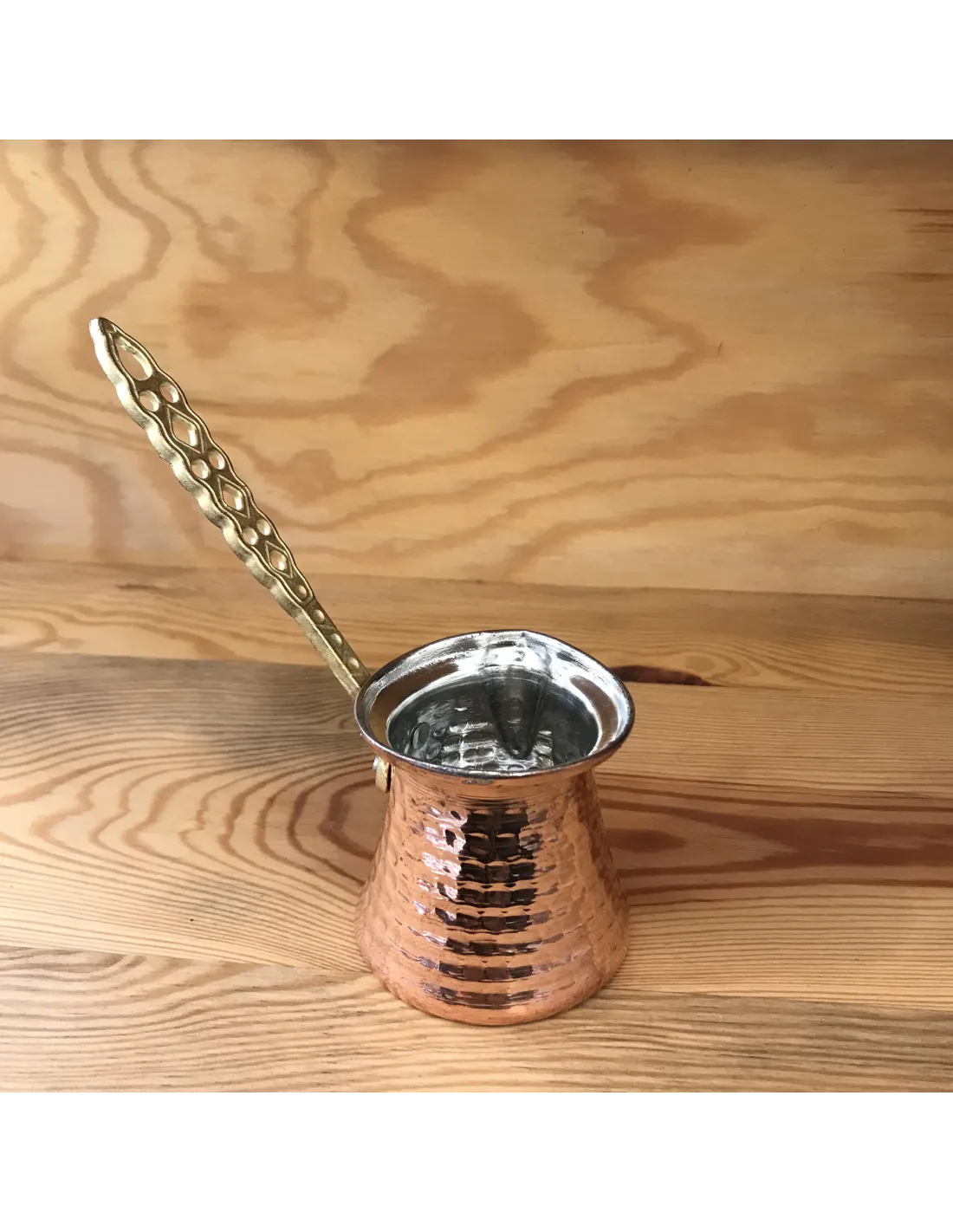 Kézzel készített réz dzsámi egyenesen a török vidékről. A jeezvát hagyományos kézműves módszerrel kalapálják.