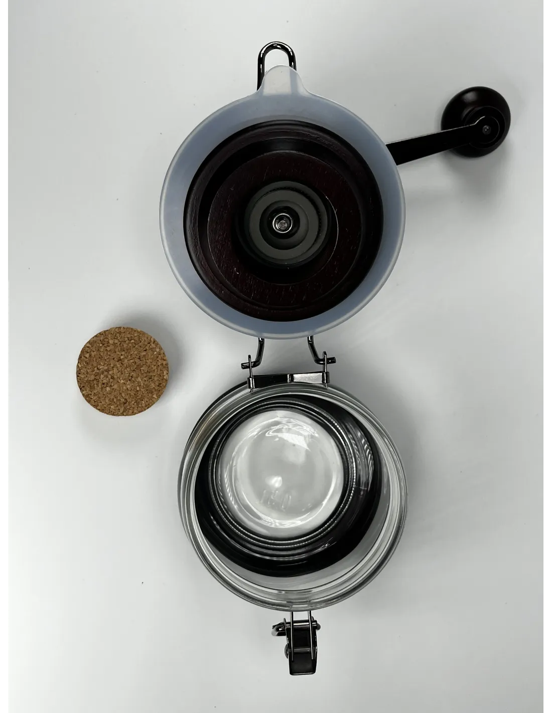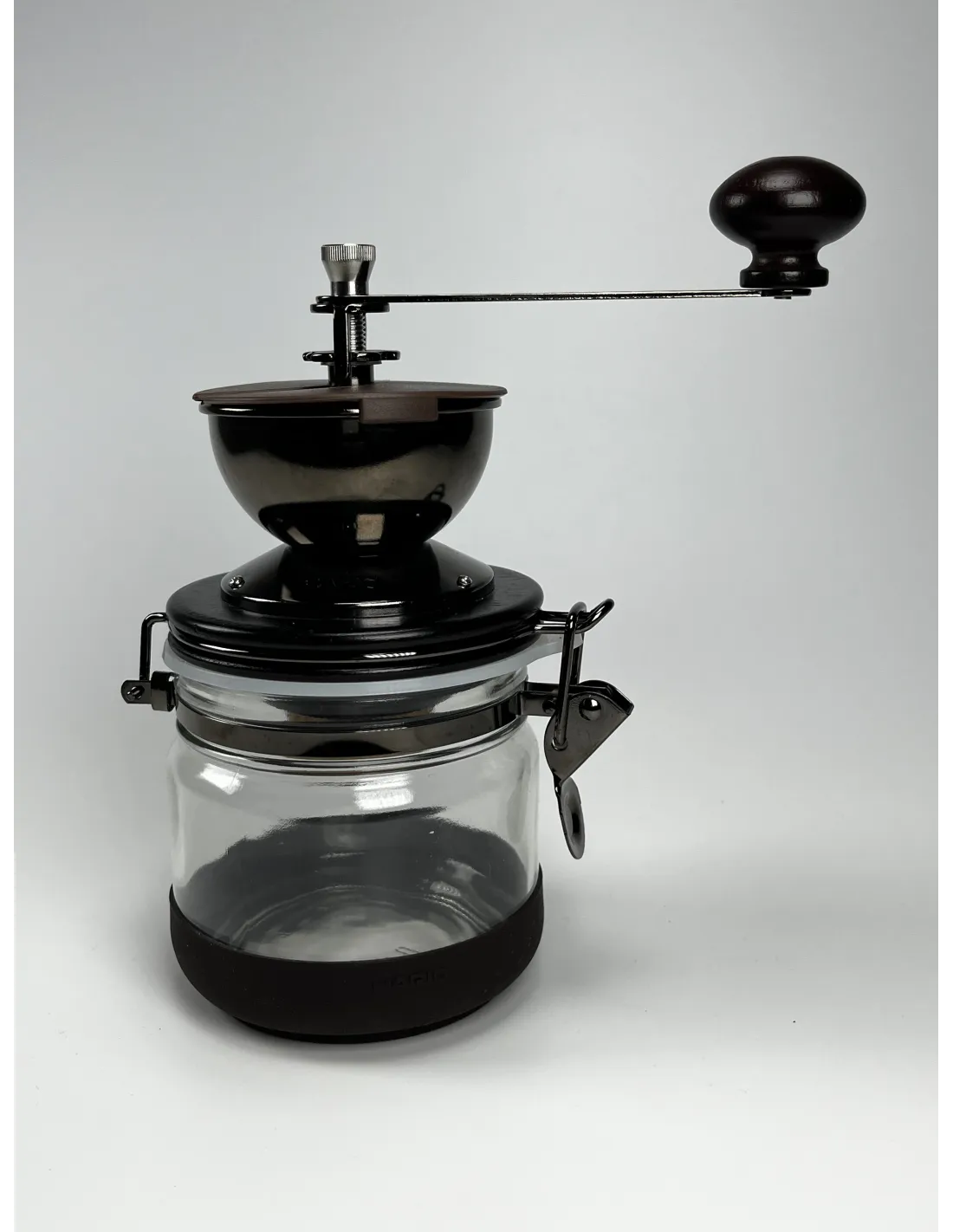 A Hario Canister (CMHN-4) kézi őrlőlegújabb változata kerámia őrlőkövekkel, állítható őrlési durvasággal és nagy, lezárt tárolóval a frissen őrölt kávé tárolására.