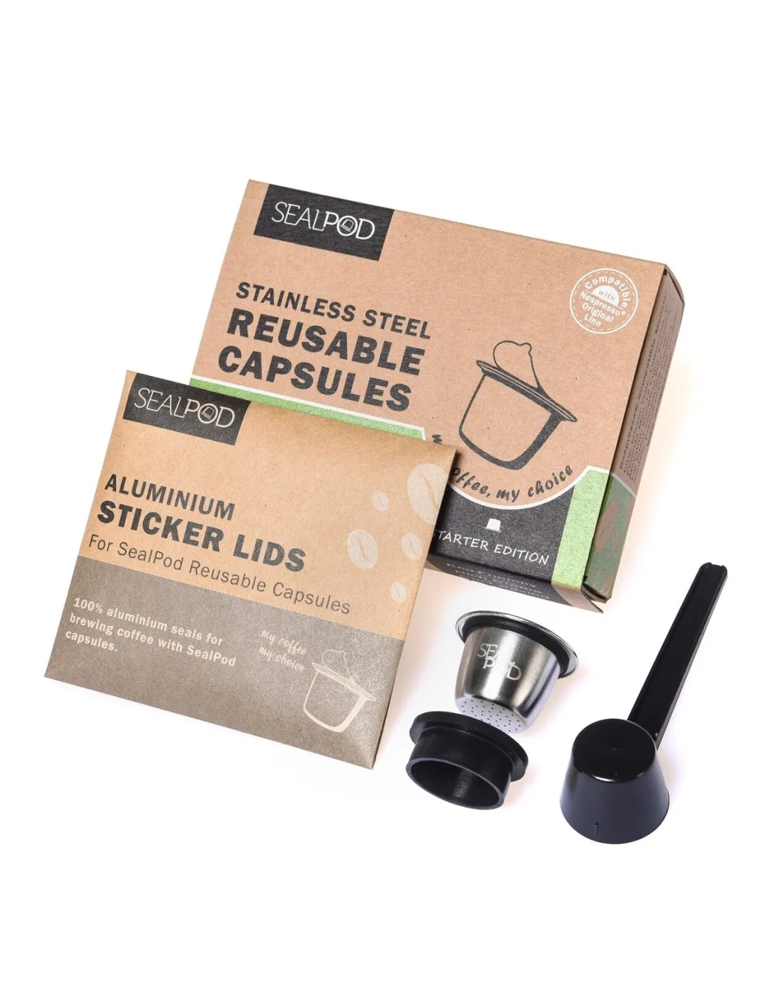 Rozsdamentes acélból készült, újratölthető Sealpod kapszula, amely kompatibilis a Nespresso® kávéfőzőkkel, így az Ön által választott friss kávé a költségek töredékéért készíthető. Matricák mellékelve!