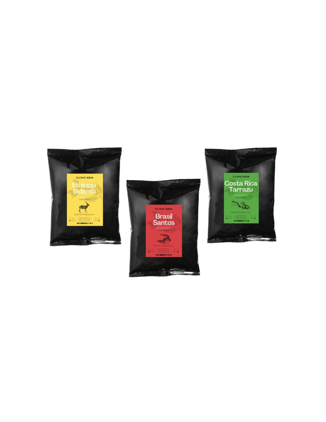 - 1x 250g Brazília Santos közepesen pörkölt, 1x 250g Etiópia Sidamo közepesen pörkölt, 1x 250g Costa Rica Tarrazú közepesen pörkölt