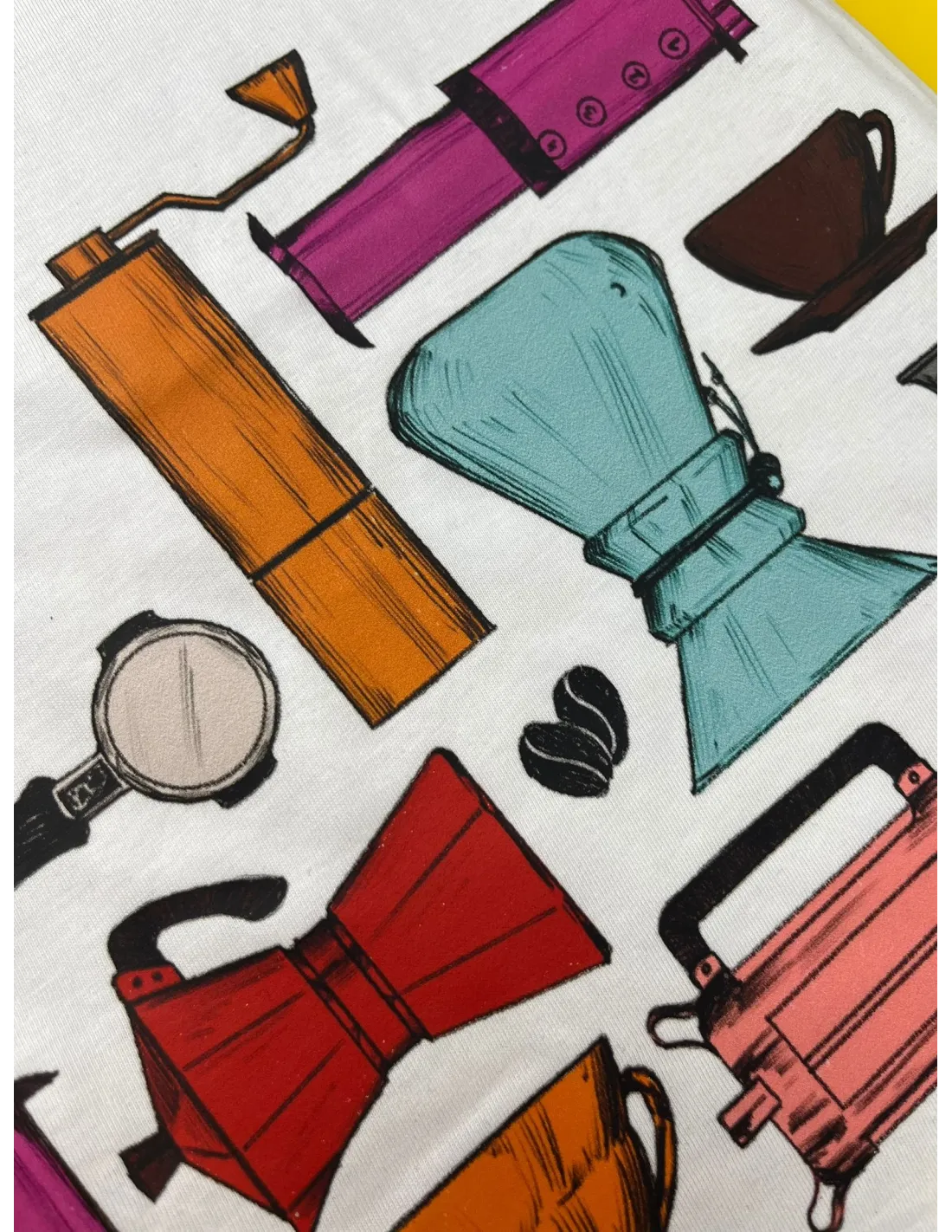 EgyGourmetCoffee póló, amely mindenki figyelmét felkelti. Nemcsak egy csésze kávéval, hanem stílusosan is élvezetesebbé teheti a napját egy különböző kávéfőzési módszerekkel nyomtatott pólóval.