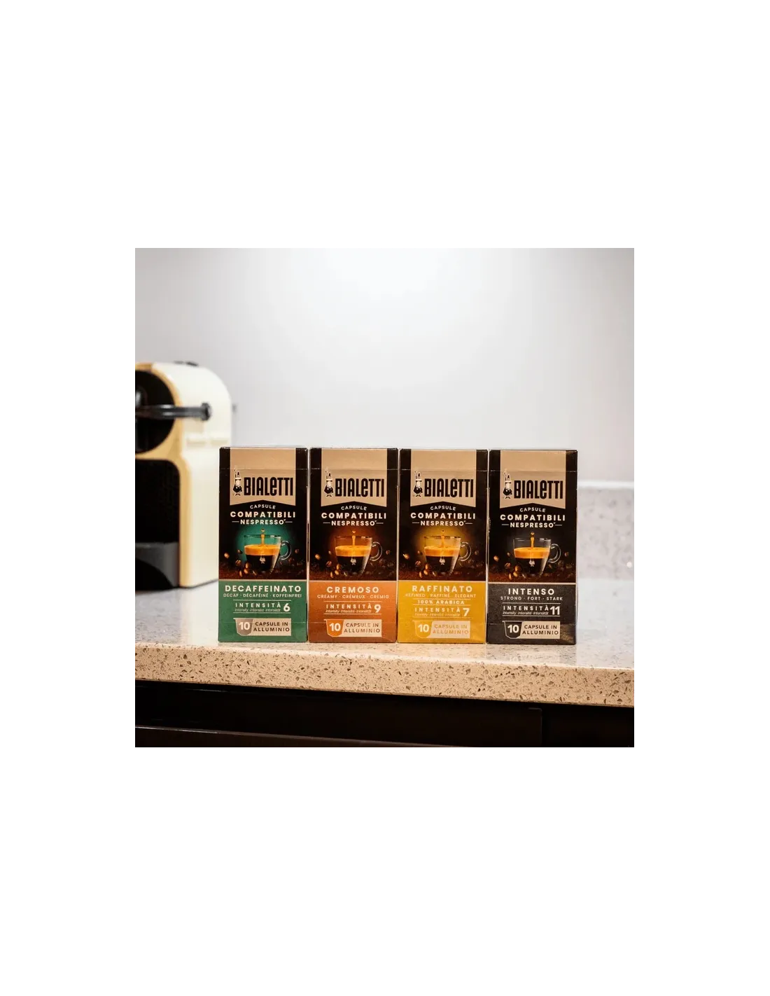 Bialetti Nespresso® Decaf kapszula - az olasz eszpresszó teljes íze kompromisszumok nélkül! Élvezze a gazdag aromát és a finom gabonás jegyeket, mindezt koffein nélkül.