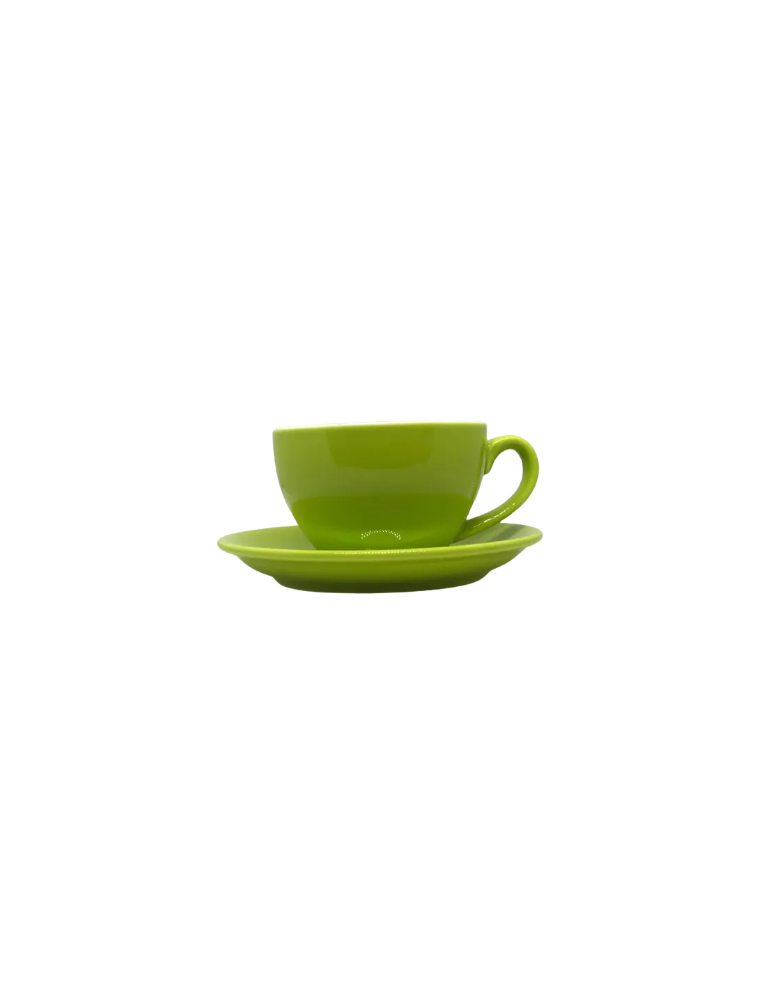 Porcelán csésze cappuccinóhoz, 200 ml űrtartalommal. Alátétet is tartalmaz. Szín: limezöld.