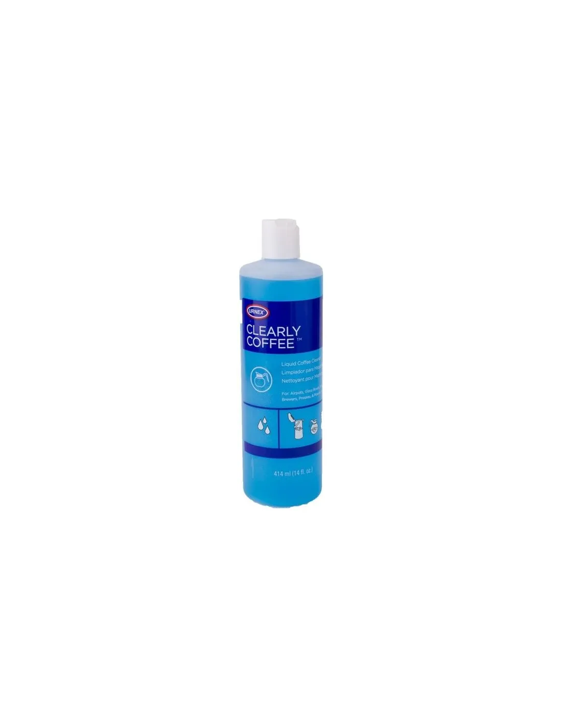 Az amerikai Urnex márkájúClearly Coffee tisztítószer a kávéolajok és lerakódások eltávolítására a kávégépekből vagy üvegedényekből. Térfogat 414ml.