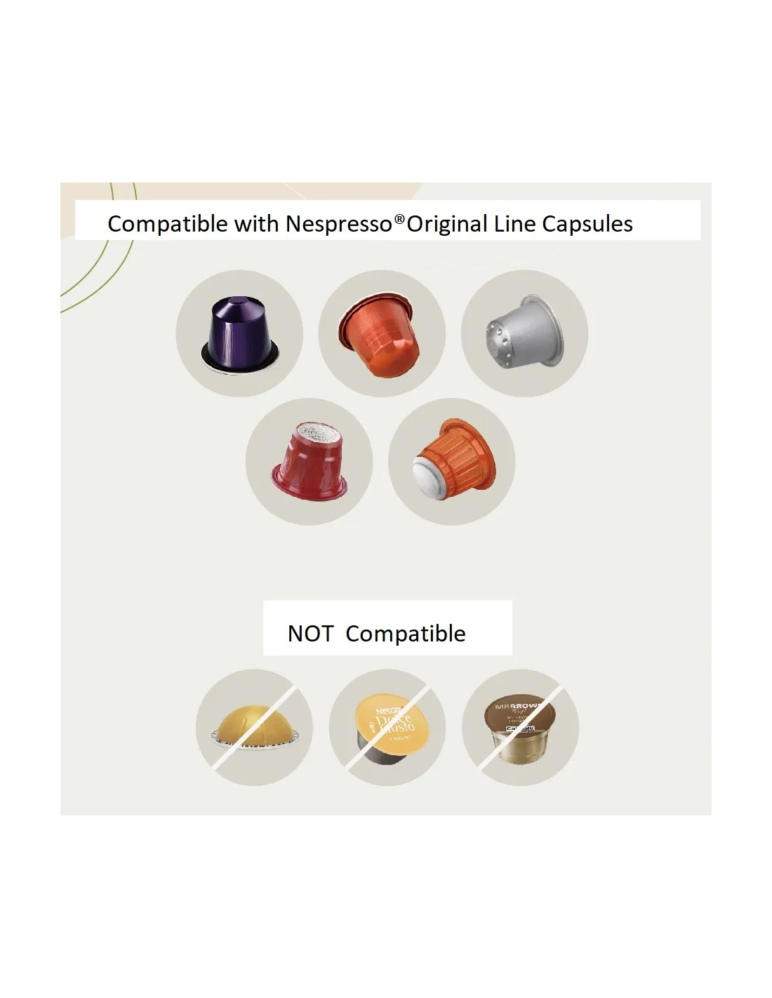 Kompatibilitás: Nespresso ® Original kapszulacsaláddal. ( NEM KOMPATIBILIS a Vertuo Nespresso ® termékcsaláddal és más márkájú kapszulákkal )
