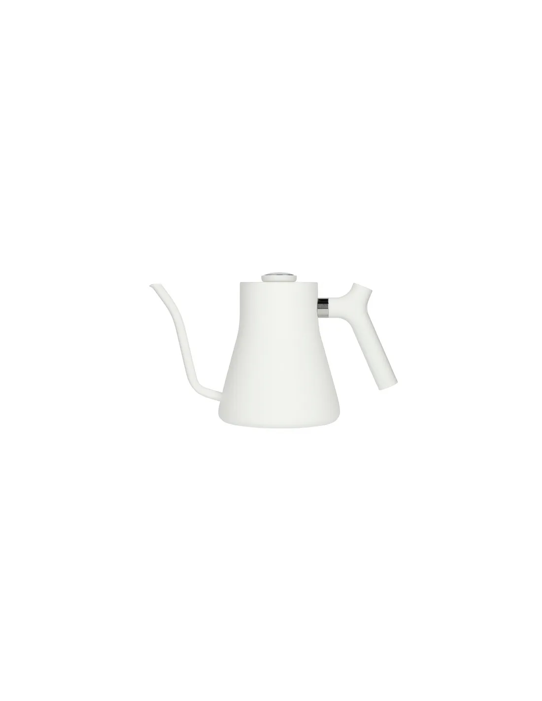 AFeloow Stagg 1l-es vízkanna beépített hőmérővel és kiöntővel, amelyet kifejezetten az alternatív kávékészítmények pontos kiöntéséhez terveztek. Szín: fehér.